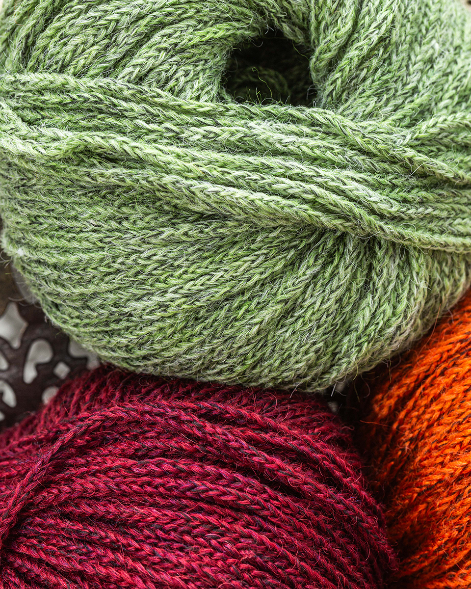 90 % Alpacka, 5 % Polyamid, 5 % Ren, ny ull