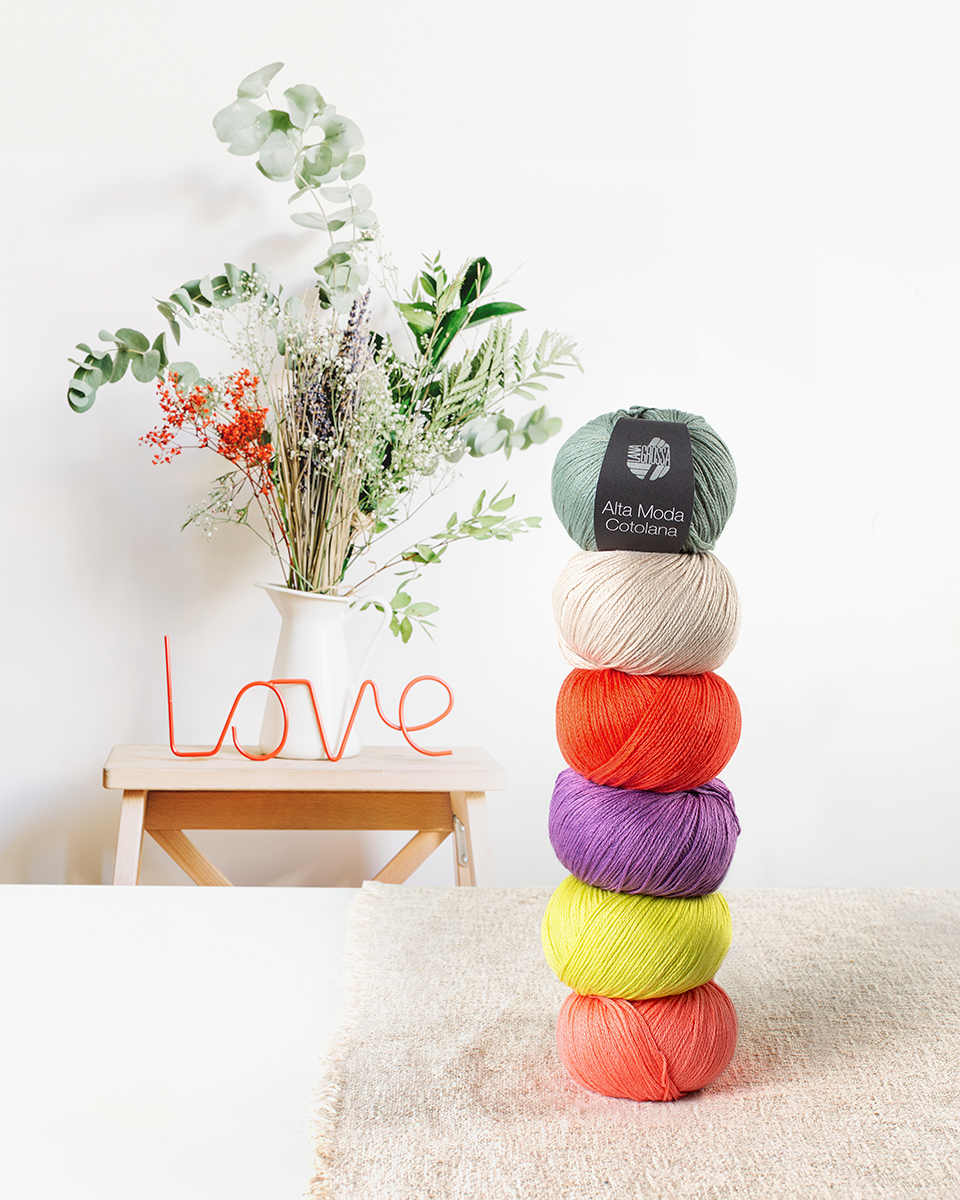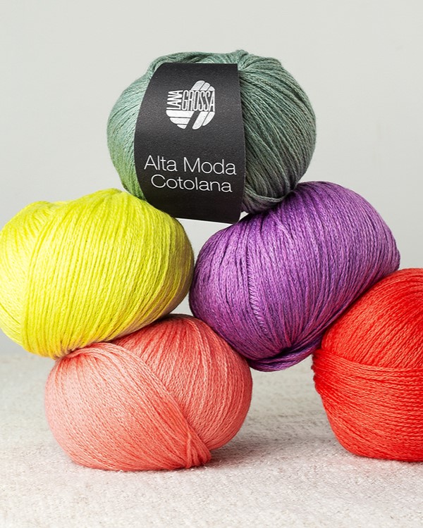 Alta Moda Cotolana är ett modernt helårsgarn med behaglig lätthet och mjuk känsla. Den högkvalitativa blandningen av bomull, ull och polyamid förenar naturlig fräschör med värmande mjukhet – perfekt för stickade plagg som kan bäras både på våren och under höst och vinter. Den innovativa kedjestrukturen ger volym med låg vikt och ett klart, jämnt maskmönster.