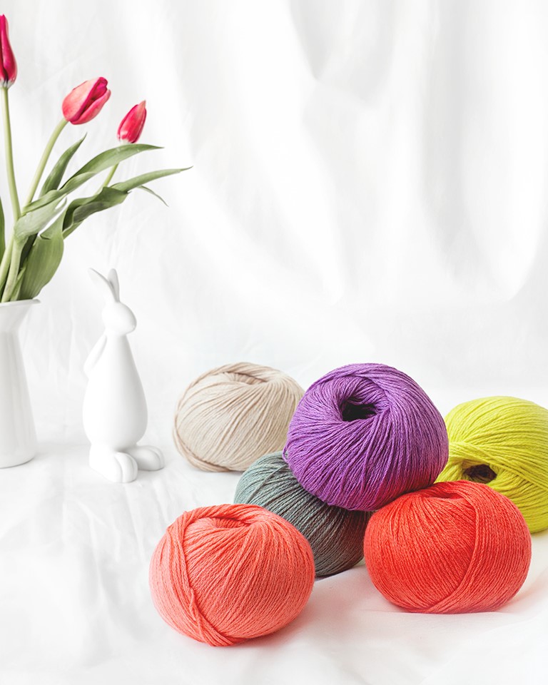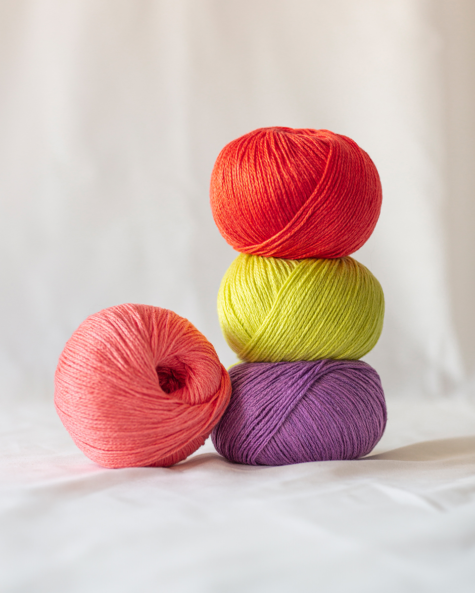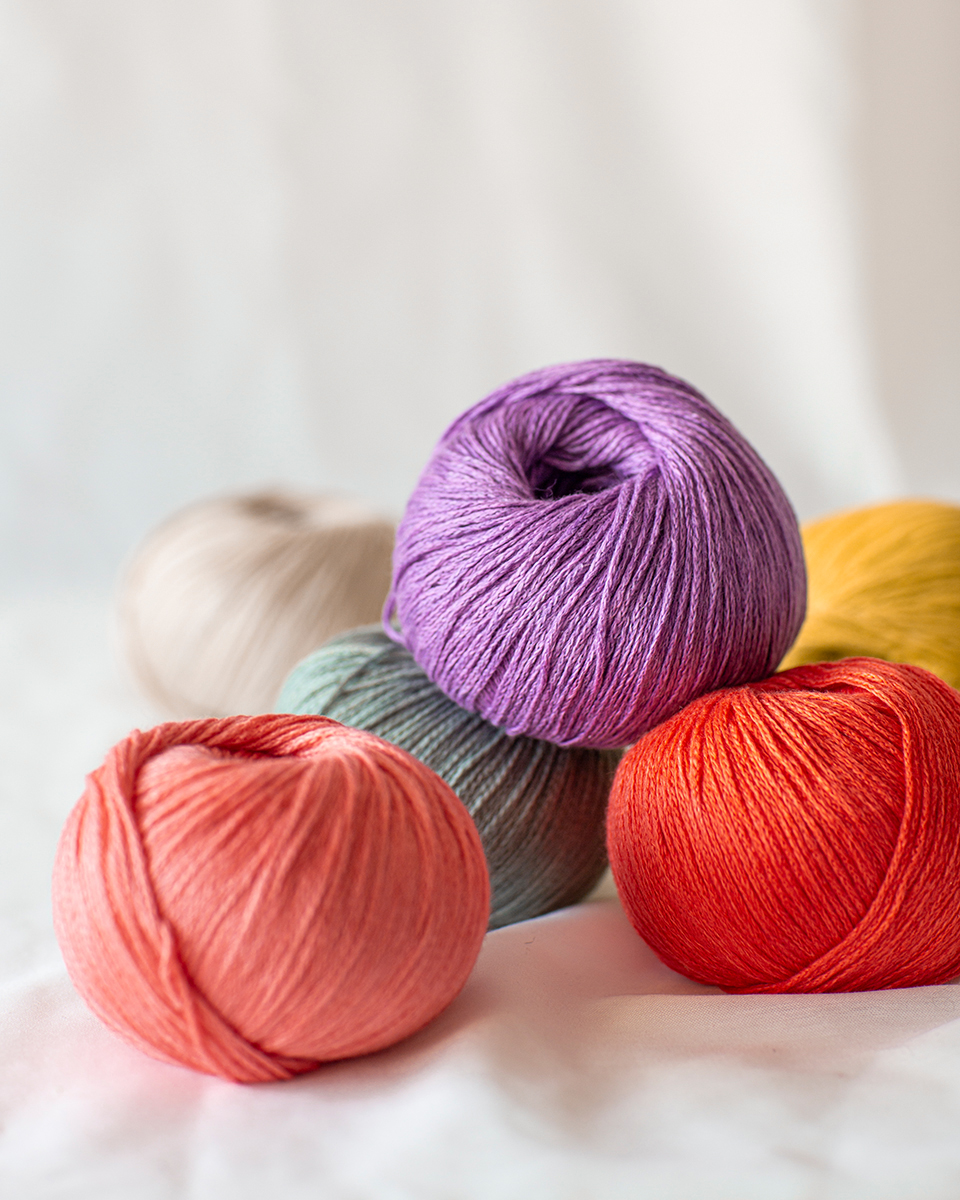 Kedjespunnet garn i pima bomull och merinoull, med låg nopp-risk (low pilling).