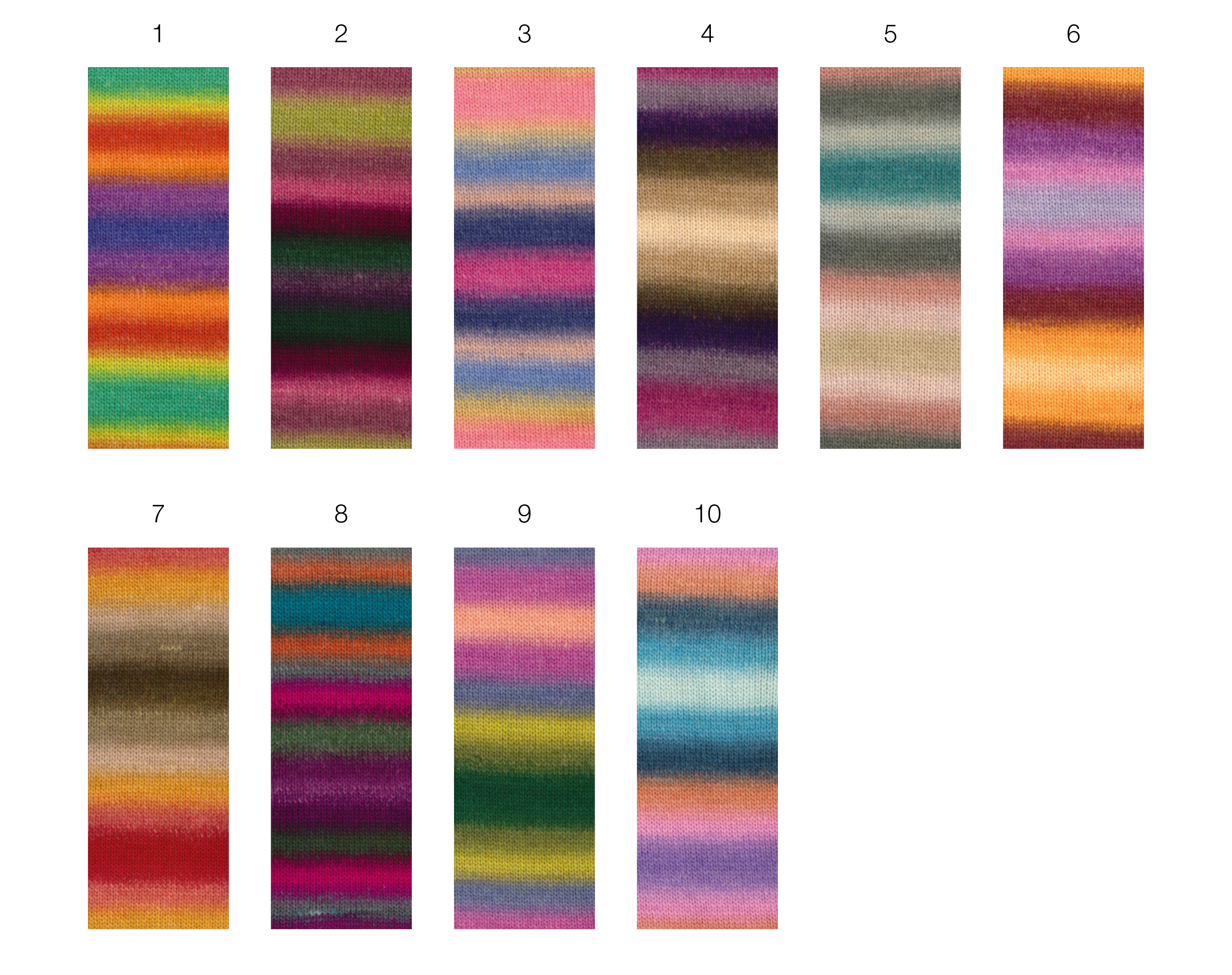 Lana Grossa Colorato Aktion – det mångsidiga vintergarnet med uttrycksfulla färgskiftningar! Mjukt, varmt och lätt att arbeta med, perfekt för tröjor, jackor, sjalar och accessoarer. Den briljanta färgblandningen gör varje stickat plagg unikt.