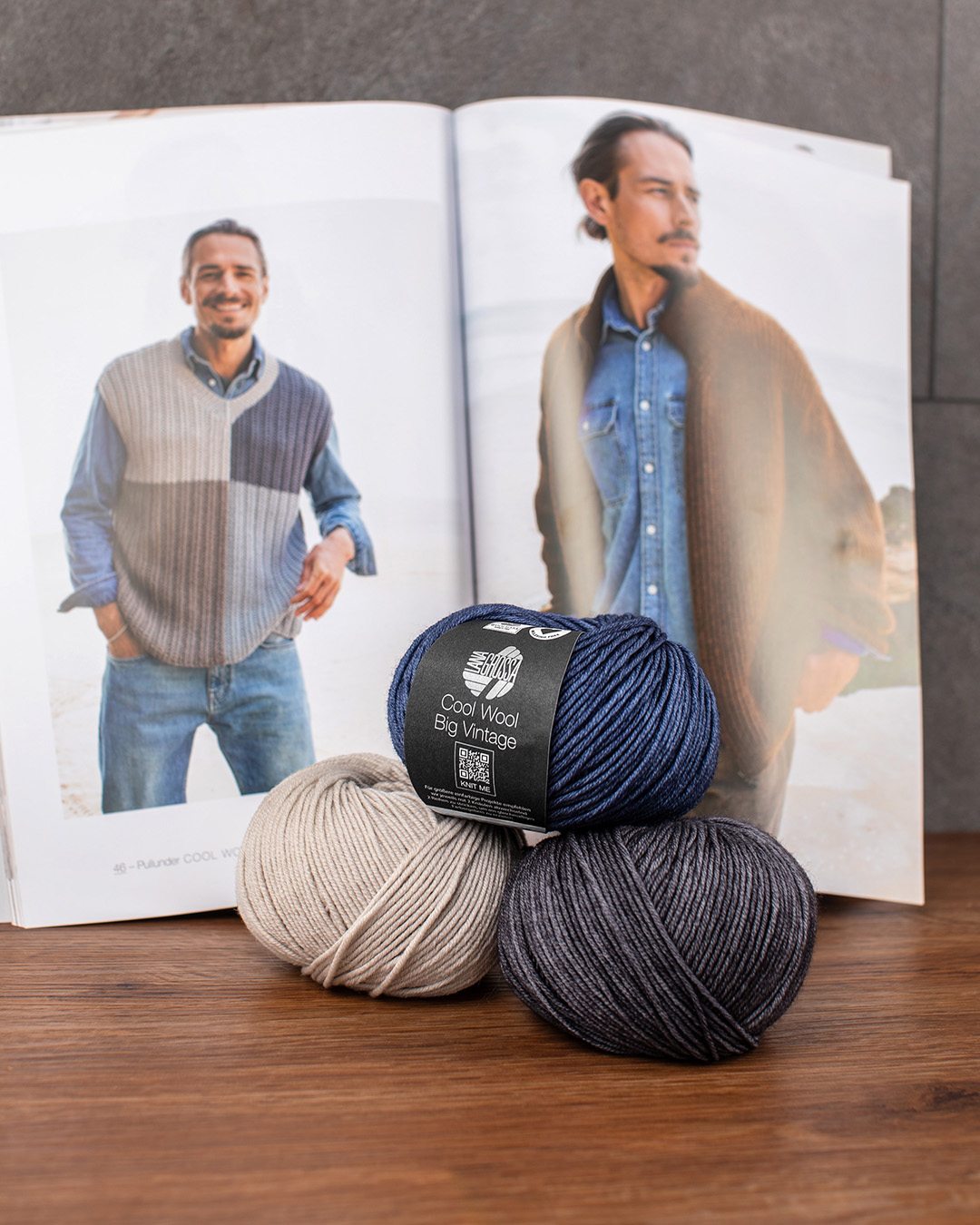 Cool Wool Big är den ”stora brodern” till den populära Cool Wool och består av 100 % merinoull. Garnet är något tjockare, men lika mjukt, formstabilt och särskilt behagligt mot huden. Det passar perfekt för varma tröjor, koftor, mössor och mysiga accessoarer. Tack vare de extra fina fibrerna är Cool Wool Big andningsaktivt, temperaturutjämnande och filtfritt – perfekt för högkvalitativa stickprojekt med en klassisk, tydlig maskbild.