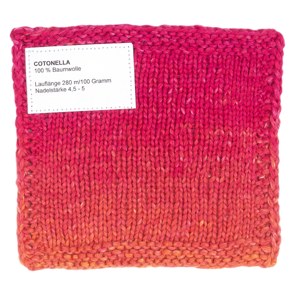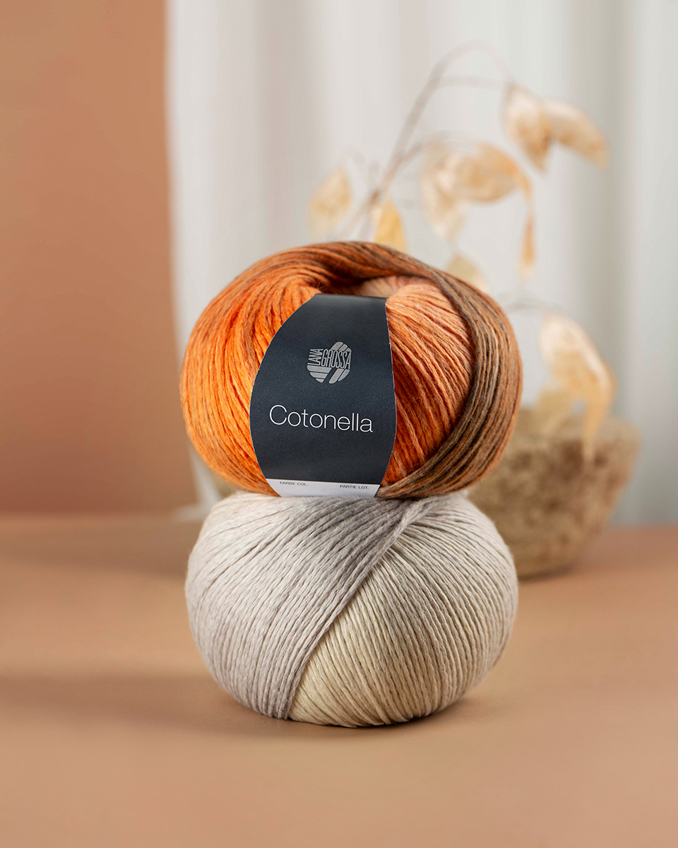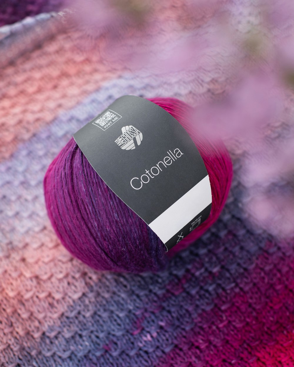 Cotonella är ett mjukt somrigt garn av 100 % bomull med en speciell charm: Tack vare den subtila färgskiftningen i spray-dye-effekt skapas ett livligt, lätt melerat maskmönster när du stickar – helt utan färgbyte. Den behagliga känslan och höga hudvänligheten gör Cotonella till det perfekta valet för sommartröjor, toppar, sjalar och barnplagg.