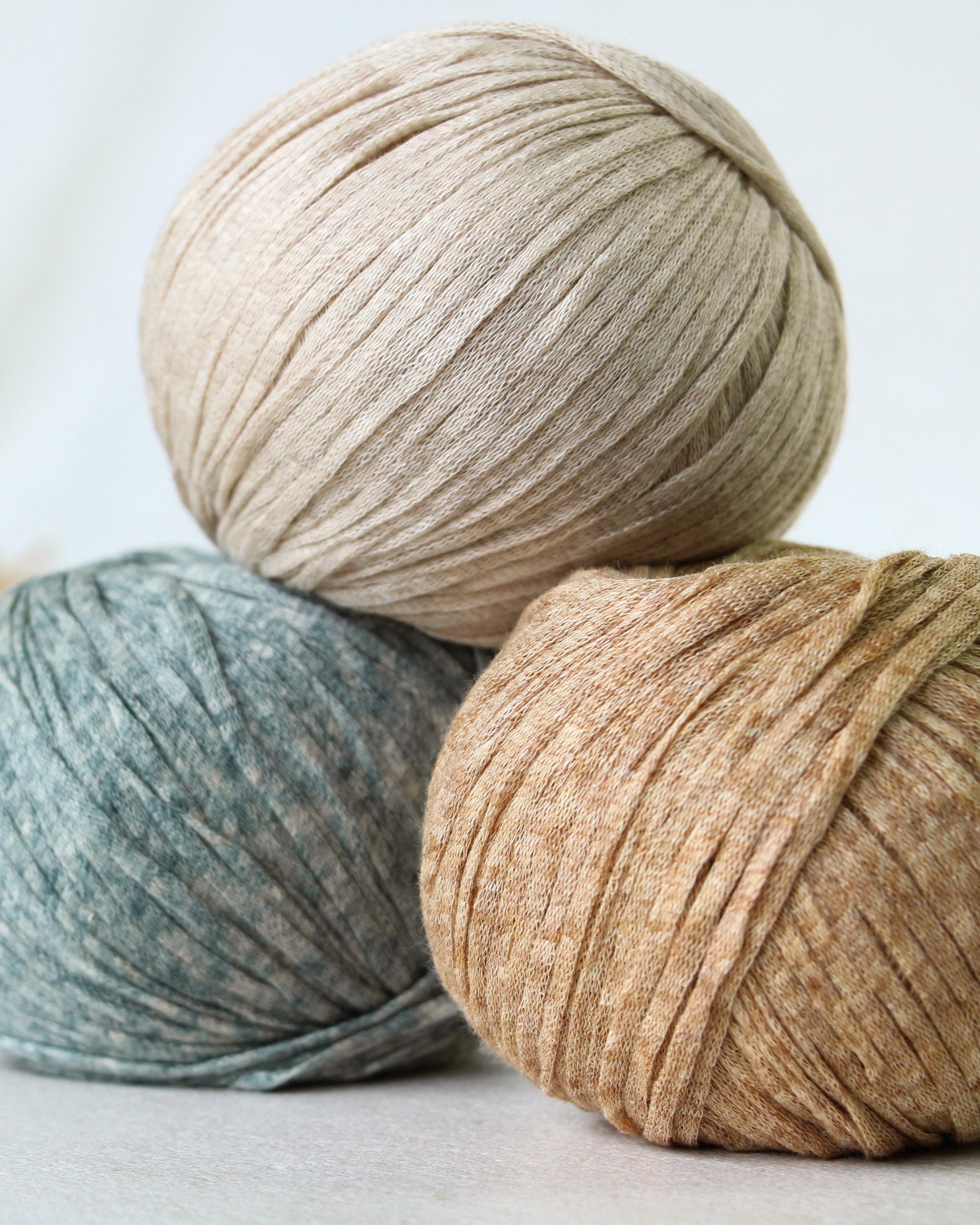 Traditionellt bandgarn i bomull och merinoull med naturlig melange-effekt.