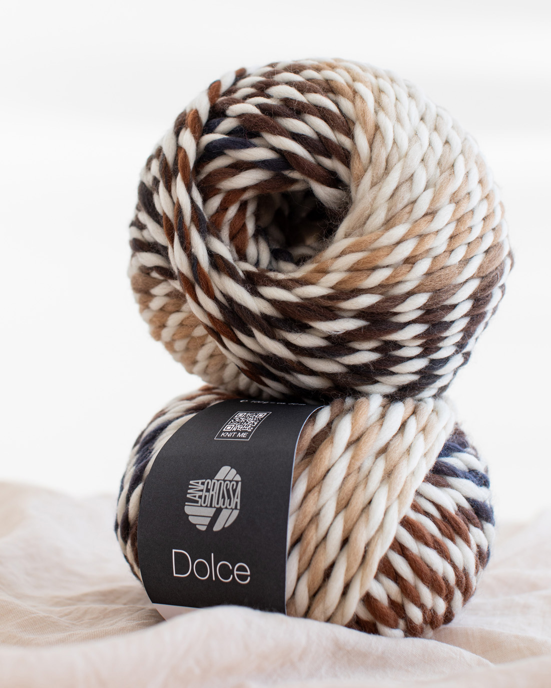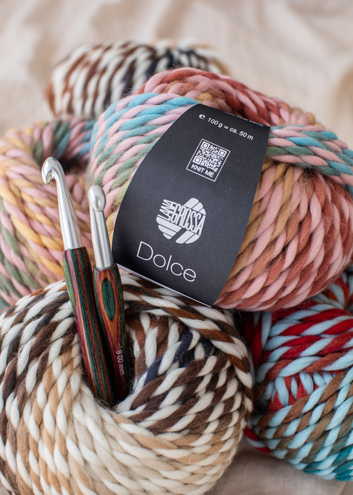 Med sin särskilt tjocka struktur kan moderna tröjor, jackor och accessoarer stickas på nolltid. Det unika utseendet med tydliga ränder och moulinéeffekter ger varje projekt karaktär. Ett måste för alla som älskar voluminösa vintergarner. Lana Grossa Dolce är särskilt lämpligt för nybörjare.