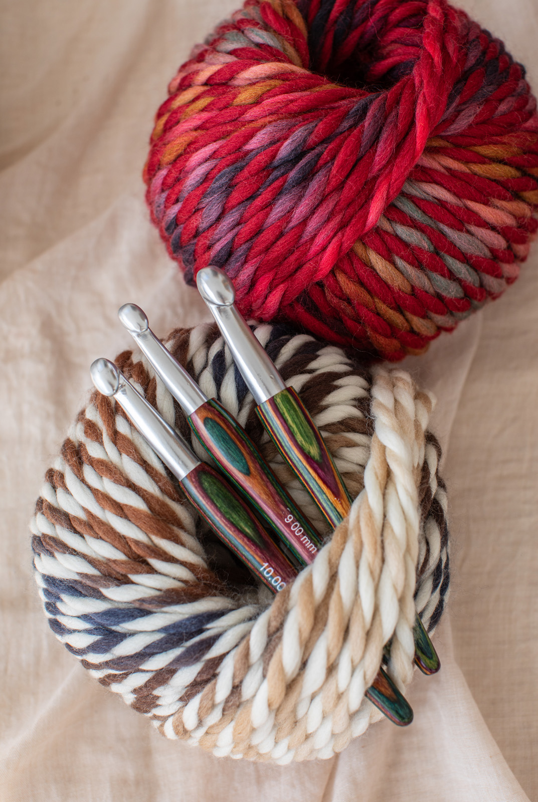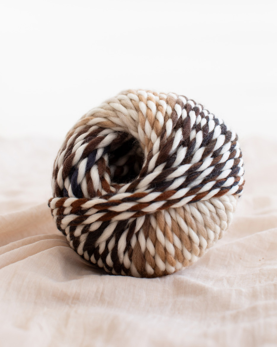 Perfekt för chunky knits: Vårt tumme-tjocka dochtgarn, ett garn med en tjock kärna som ger volym och struktur, skapar breda ränder och mouliné-effekter.