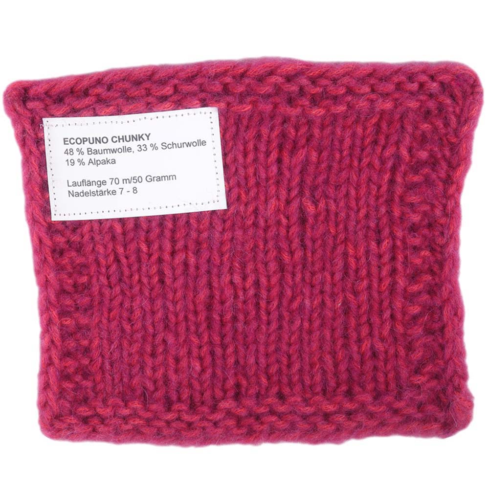 Ecopuno Chunky är den voluminösa varianten av det populära Ecopuno-garnet – mysigt mjukt, behagligt lätt och snabbt att arbeta med. Blandningen av bomull, merinoull och alpacka ger en särskilt skön bärkänsla och ett elegant, jämnt maskmönster. Perfekt för grova tröjor, jackor, mössor eller heminredning där komfort och stil står i fokus. Trots sin tjocklek förblir garnet luftigt och är därför idealiskt för moderna stickprojekt med struktur.