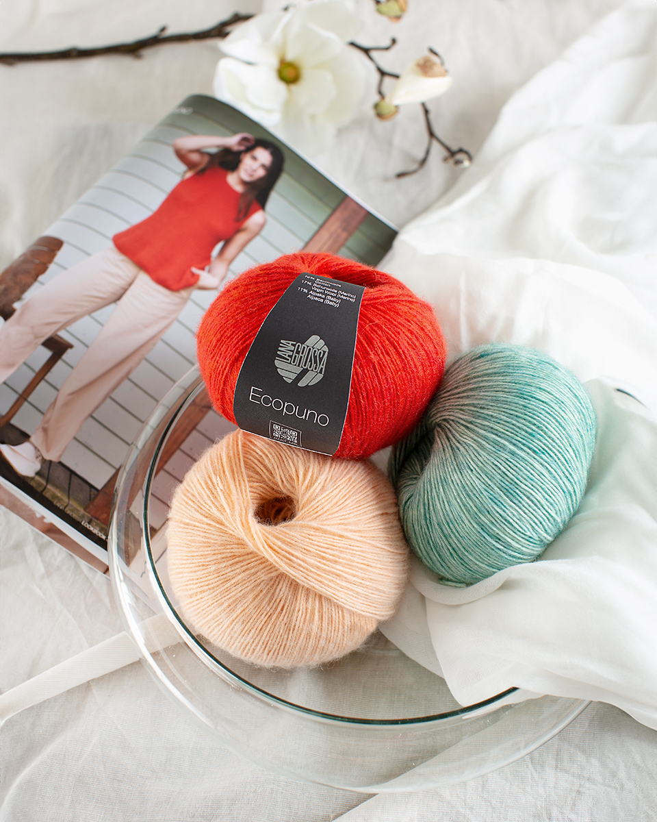 Ecopuno är ett högkvalitativt året-runt-garn med mjuk, lätt känsla och ett elegant maskmönster. Den innovativa materialblandningen av bomull, merinoull och alpacka förenar det bästa från tre naturfibrer: svalkande fräschör, behaglig värme och mysig mjukhet. Garnet passar perfekt för tröjor, sjalar, koftor och accessoarer – både för sommaren och under övergångssäsongerna. Ecopuno är formstabilt, andningsbart och ger en särskilt behaglig bärkomfort.