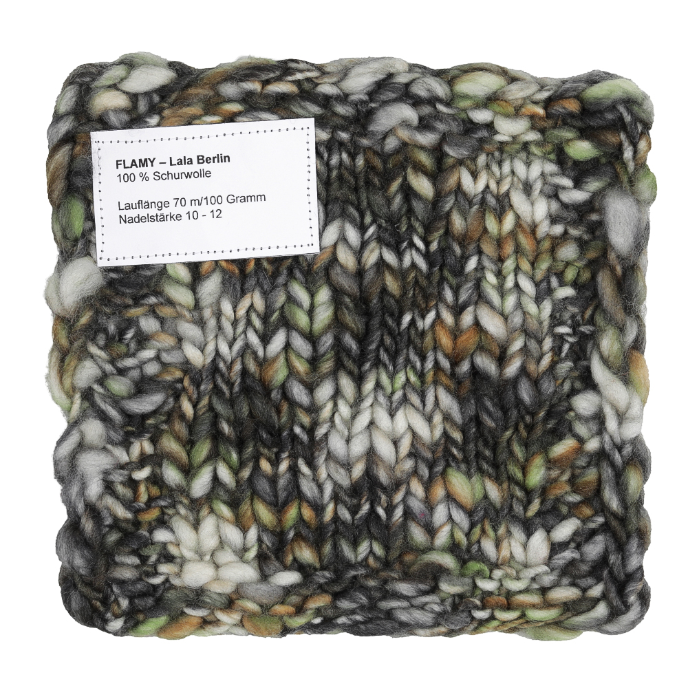 Lana Grossa Flamy – Lala Berlin Edition är det kreativa trendgarnet med en spännande struktur och moderna färgeffekter. Det lätta, värmande garnet gör varje stickat plagg till en riktig blickfångare.