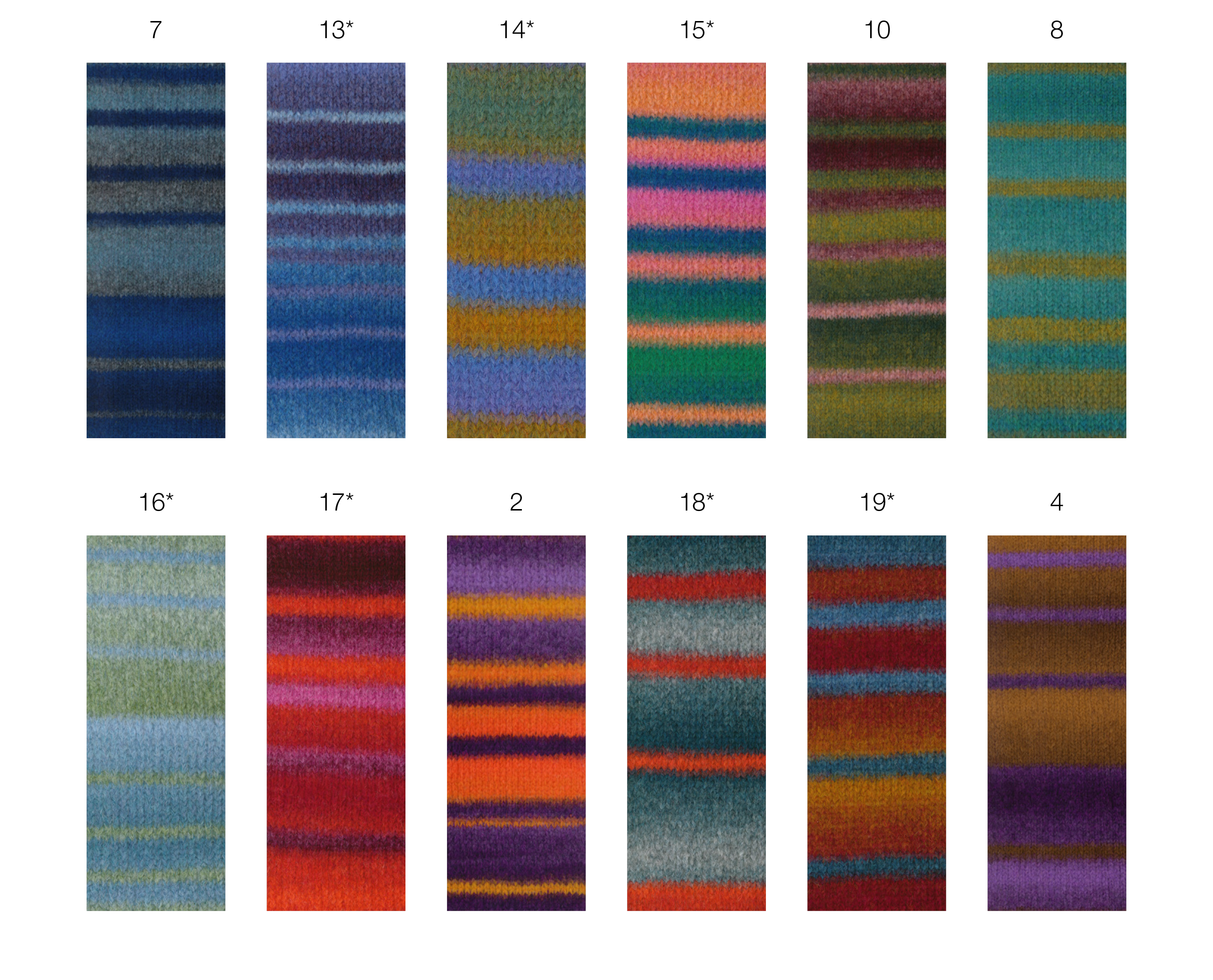 Voluminöst alpackagarn med effektstruktur och gradientränder