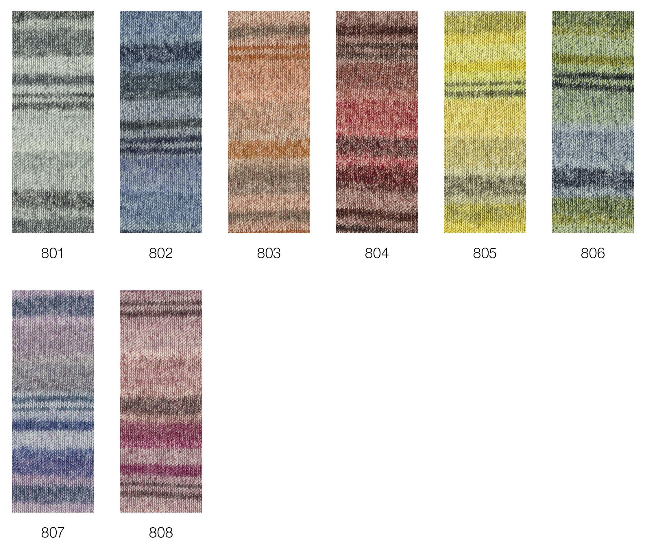 Lätt tvinnat mjukt, andningsbart och temperaturreglerande blandgarn i 45 % ren, ny ull och 30 % miljövänlig bambu, och med en andel konstfiber för bättre hållbarhet. Självrandande med mjuka färgövergångar. Finns i två varianter, Gomitolo Duo 250 och det lite tunnare Gomitolo Duo 400.