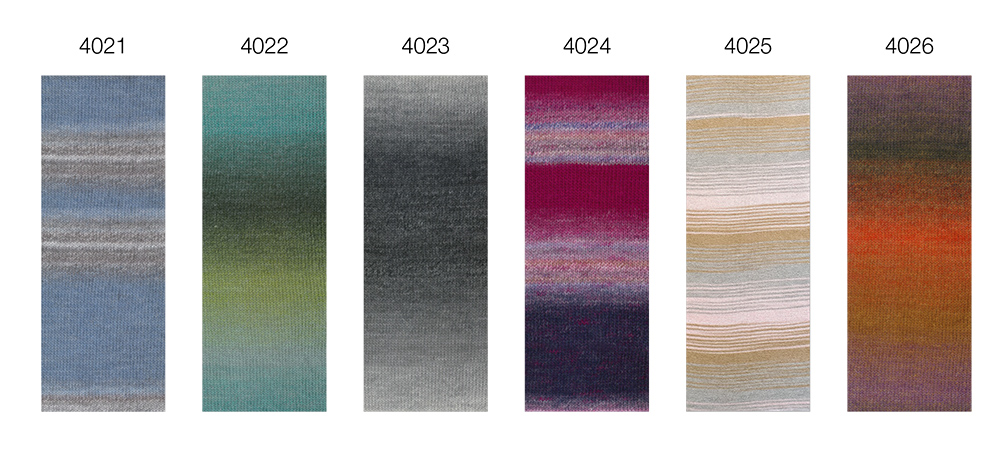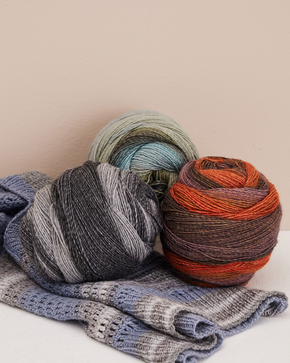 1 ply garn i en gradientfärg med en subtil lurexeffekt
