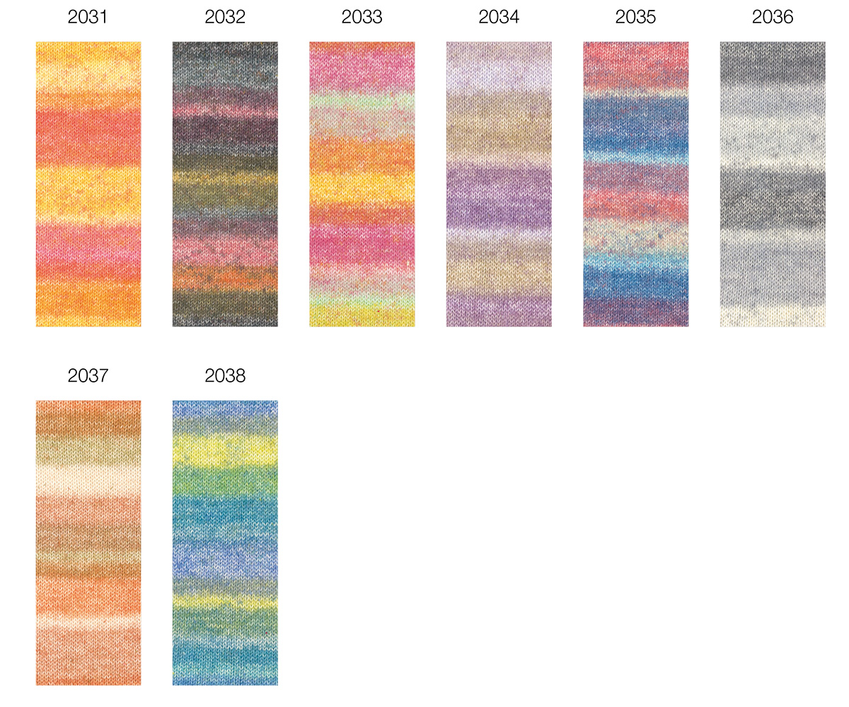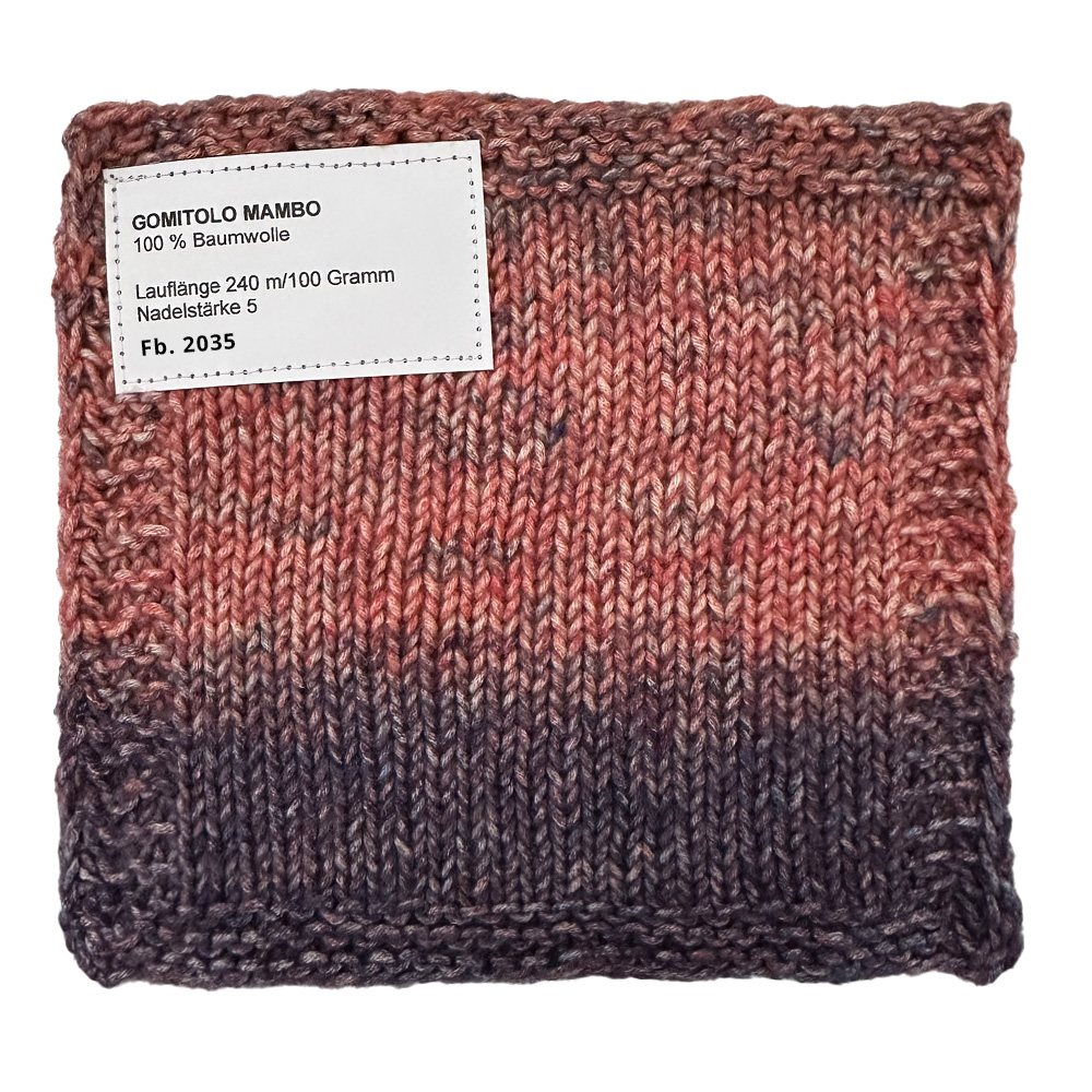 Gomitolo Mambo är ett färgstarkt garn med mjuka färgskiftningar och ett livfullt utseende. De harmoniskt avstämda färgövergångarna i kombination med garnets lätt strukturerade yta gör varje stickat plagg till en riktig blickfångare – helt utan mönsterbyte.