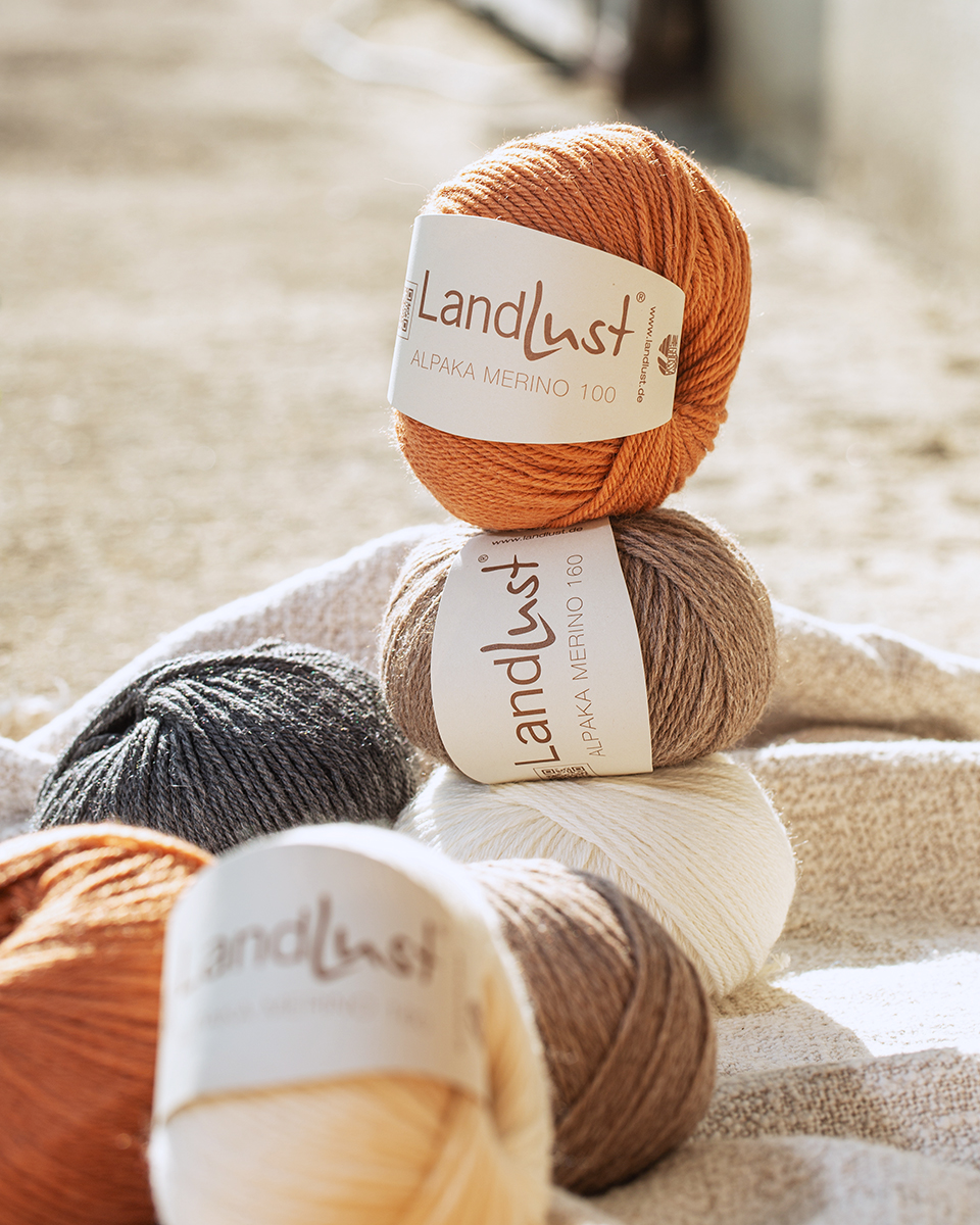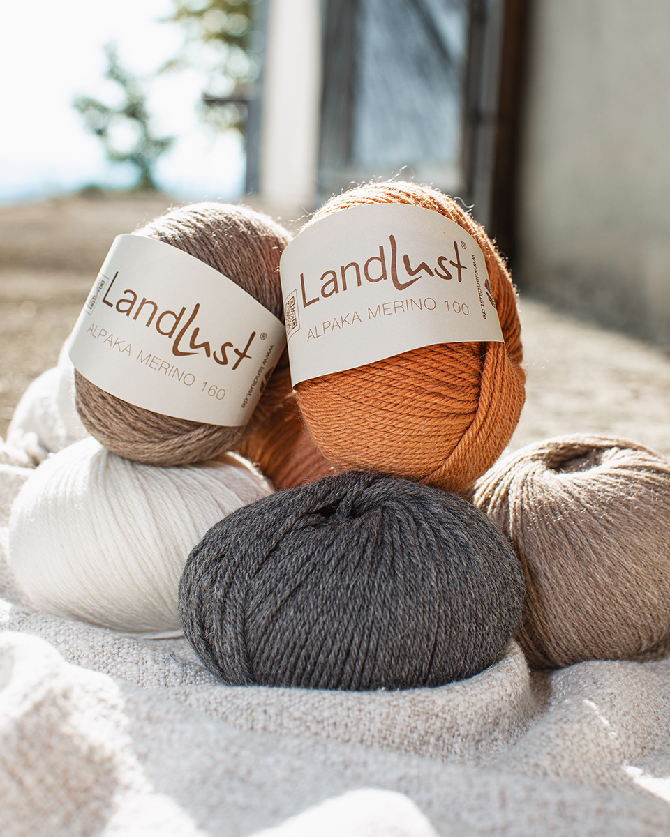 Landlust Alpaka Merino 160 är ett exklusivt, lätt garn av en underbart mjuk blandning av alpacka och merinoull, utvecklat i samarbete med tidningen Landlust. Det kombinerar naturlig värme, lätthet och högsta bärkomfort. Garnet har en behagligt slät yta, ett vackert maskbild och lämpar sig utmärkt för tidlösa, eleganta stickprojekt med naturlig utstrålning.