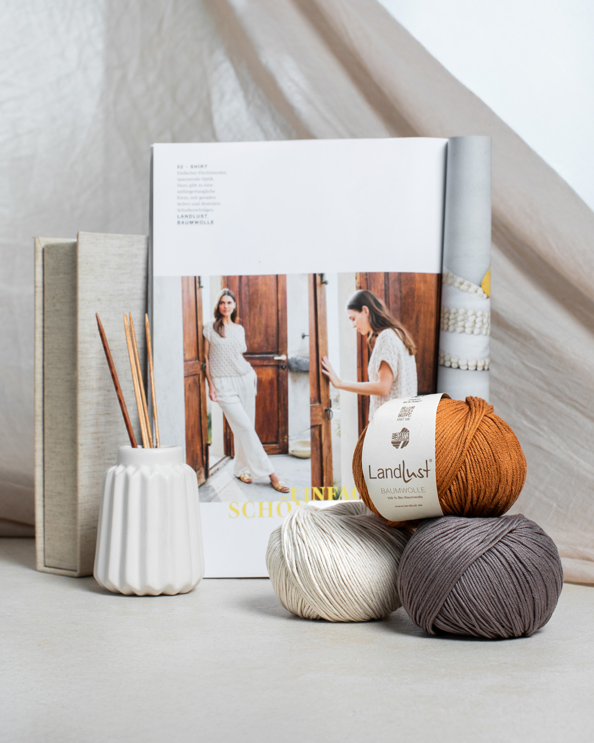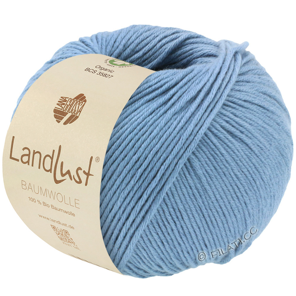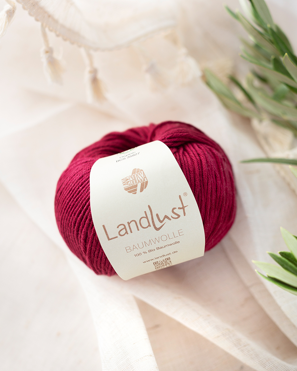 Landlust Bomull är ett naturligt, mjukt garn av 100 % ekologisk bomull, utvecklat i samarbete med tidningen Landlust. Det har en behaglig och greppvänlig maskbild. Tack vare den hudvänliga, GOTS-certifierade ekologiska kvaliteten är det också perfekt för känslig hud.