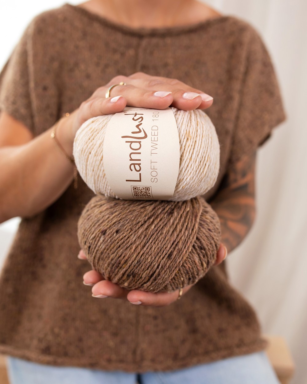 Landlust Soft Tweed 180 är ett härligt mjukt tweedgarn med rustik charm och modern karaktär. I samarbete mellan Lana Grossa och tidningen Landlust imponerar det med en högkvalitativ blandning av 100 % merinoull, som är behaglig mot huden och samtidigt ger ett naturligt utseende. Garnet är lätt, voluminöst och andningsbart – perfekt för mysiga tröjor, jackor och accessoarer med en touch av lantlig stil. Små tweednoppor ger stickningen liv och struktur.