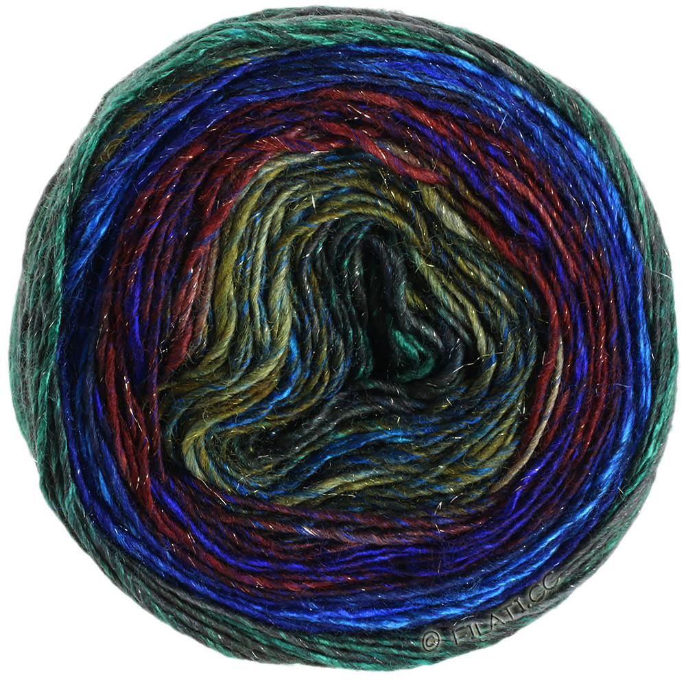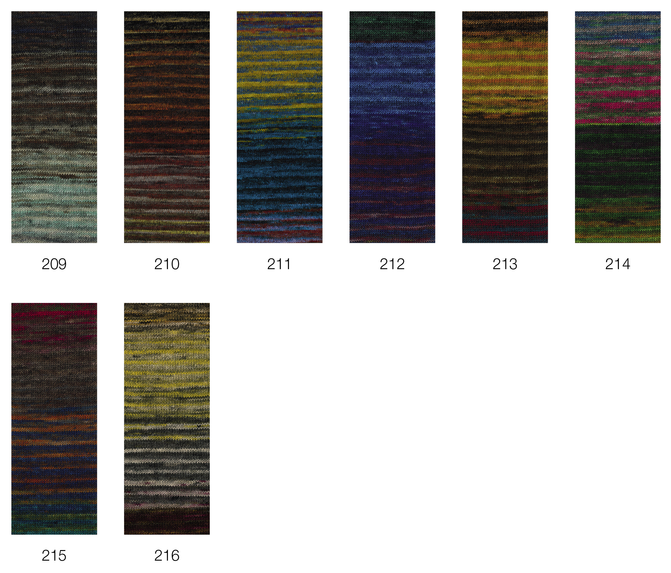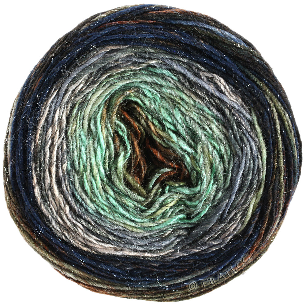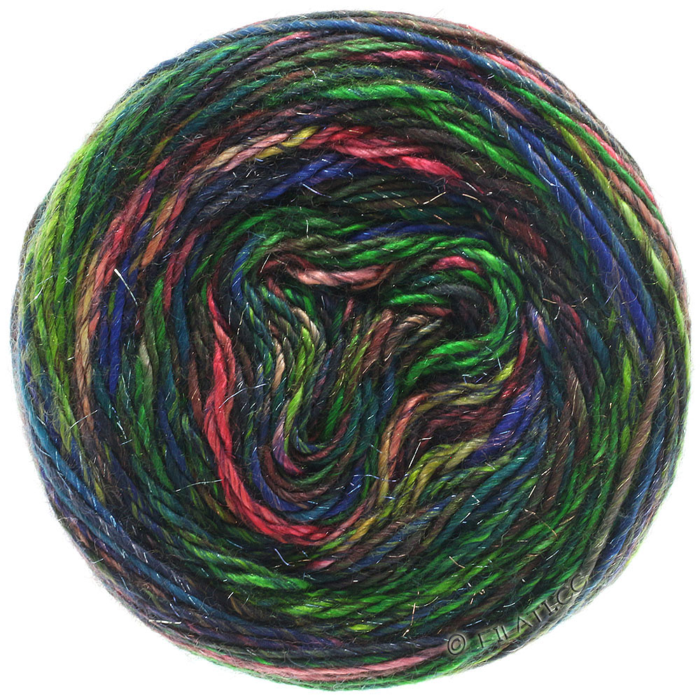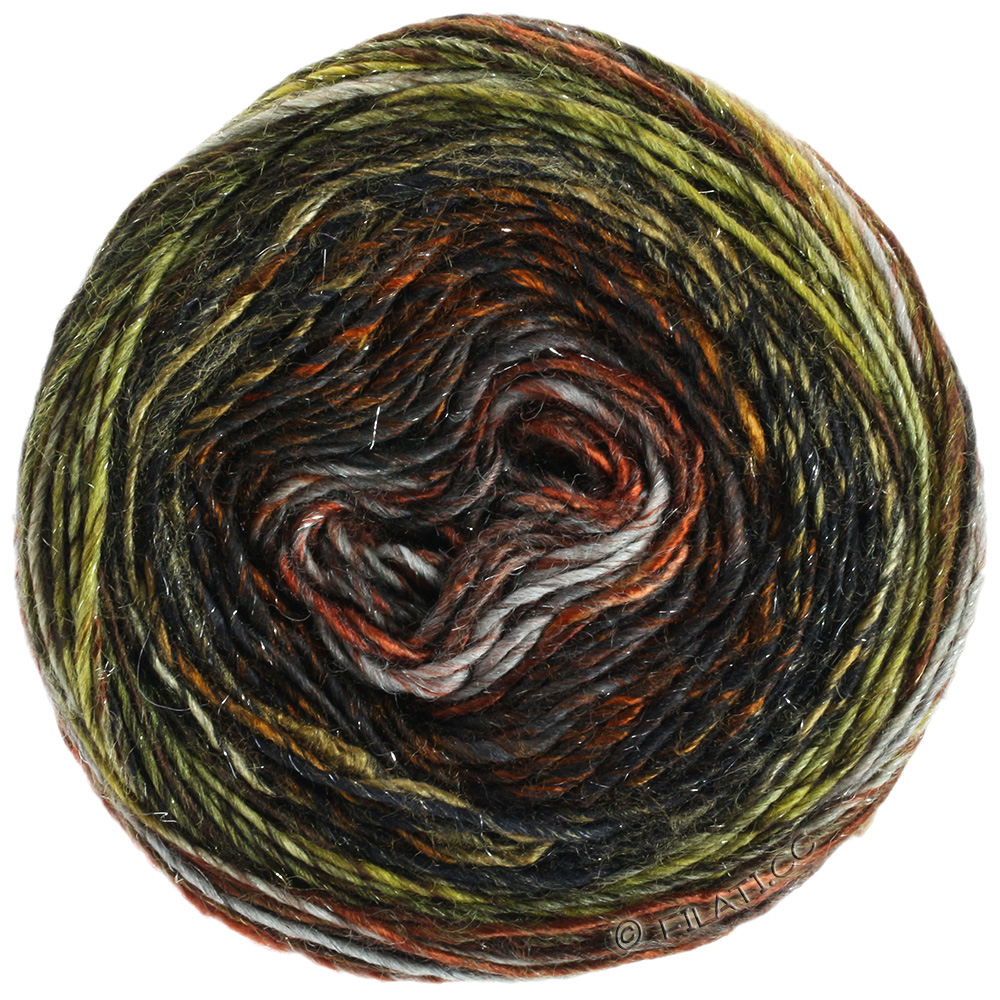 Flerfärgat tryckt 1-trådigt blandgarn med lätt glanseffekt, i 40% ren, ny merinoull.