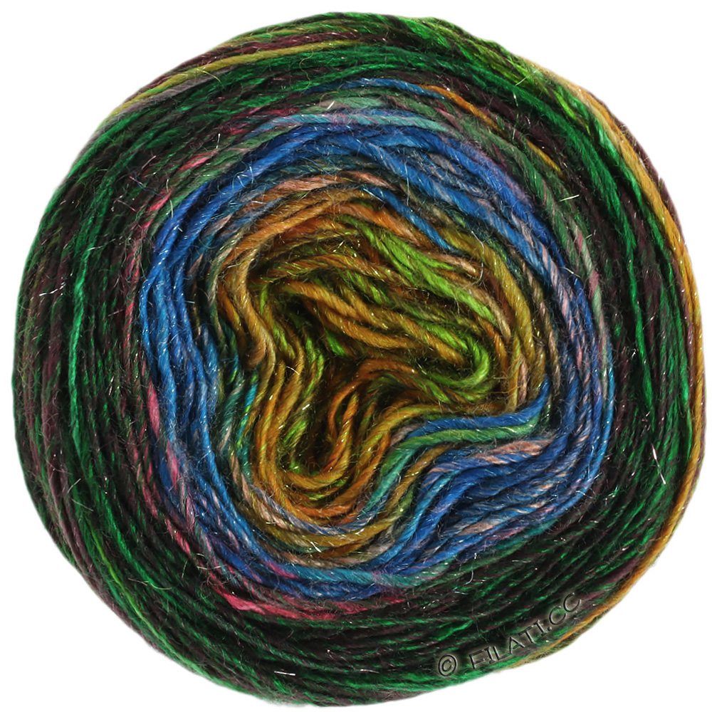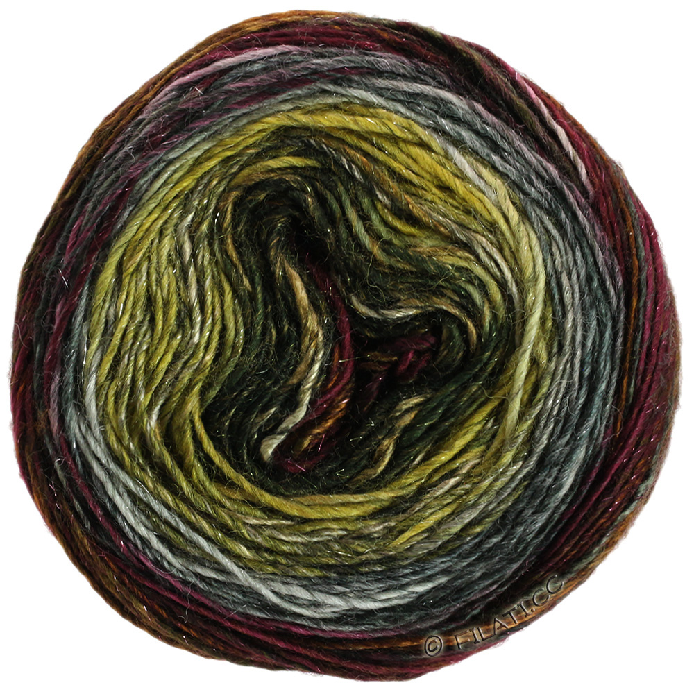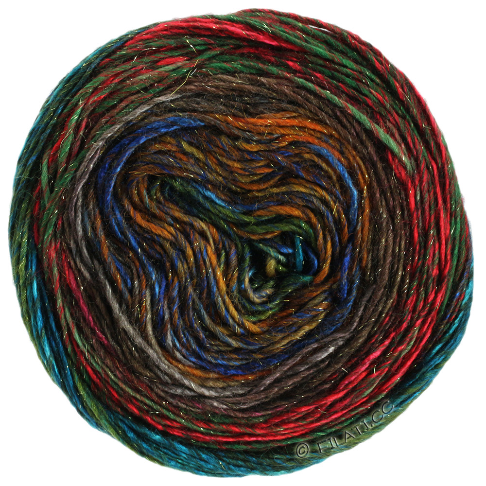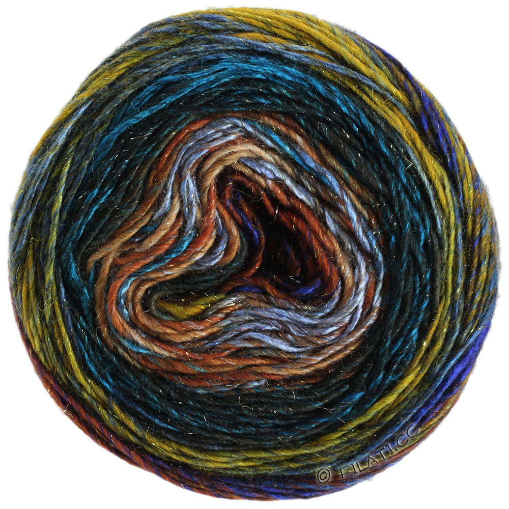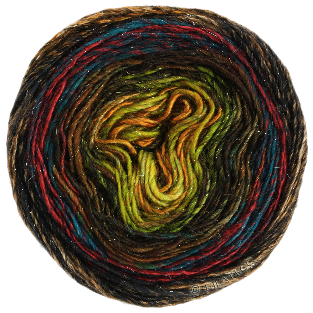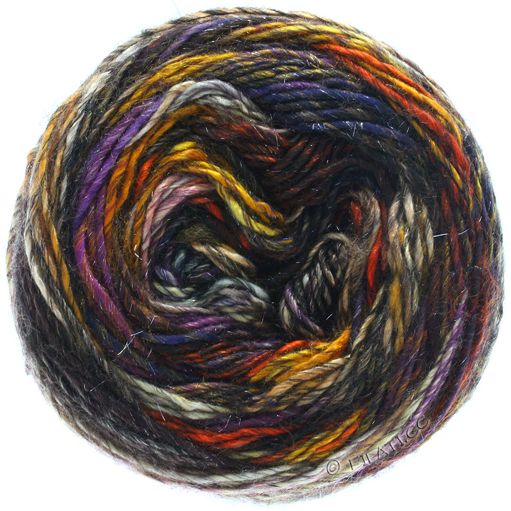 Flerfärgat tryckt 1-trådigt blandgarn med lätt glanseffekt, i 40% ren, ny merinoull.