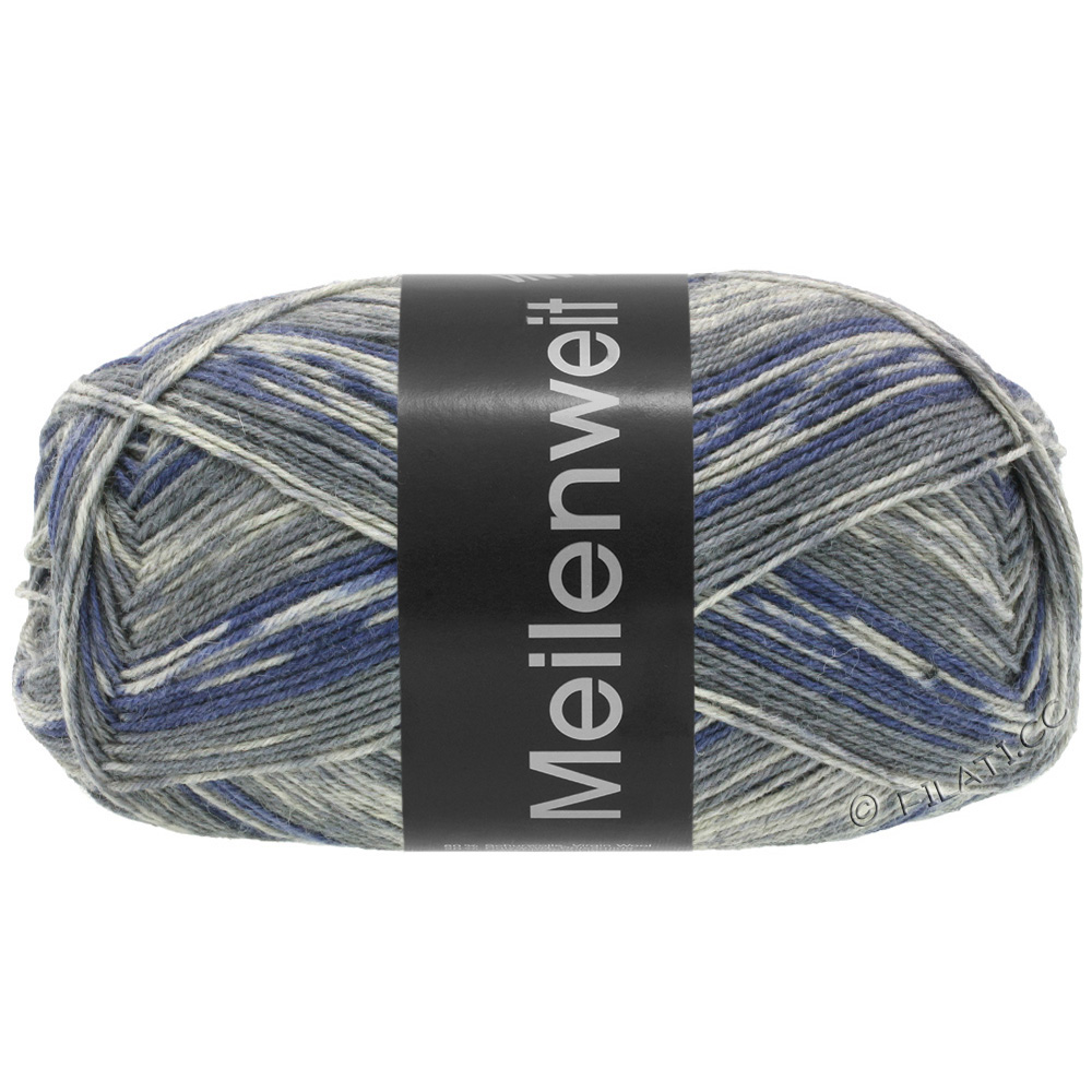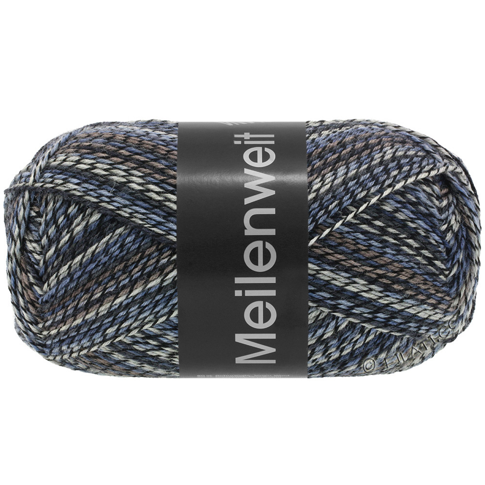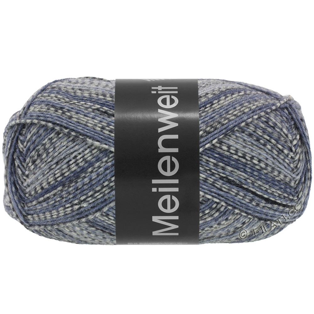 Lana Grossa Meilenweit 100 Black Denim Mix står för trendiga strumpor i en cool jeanslook.