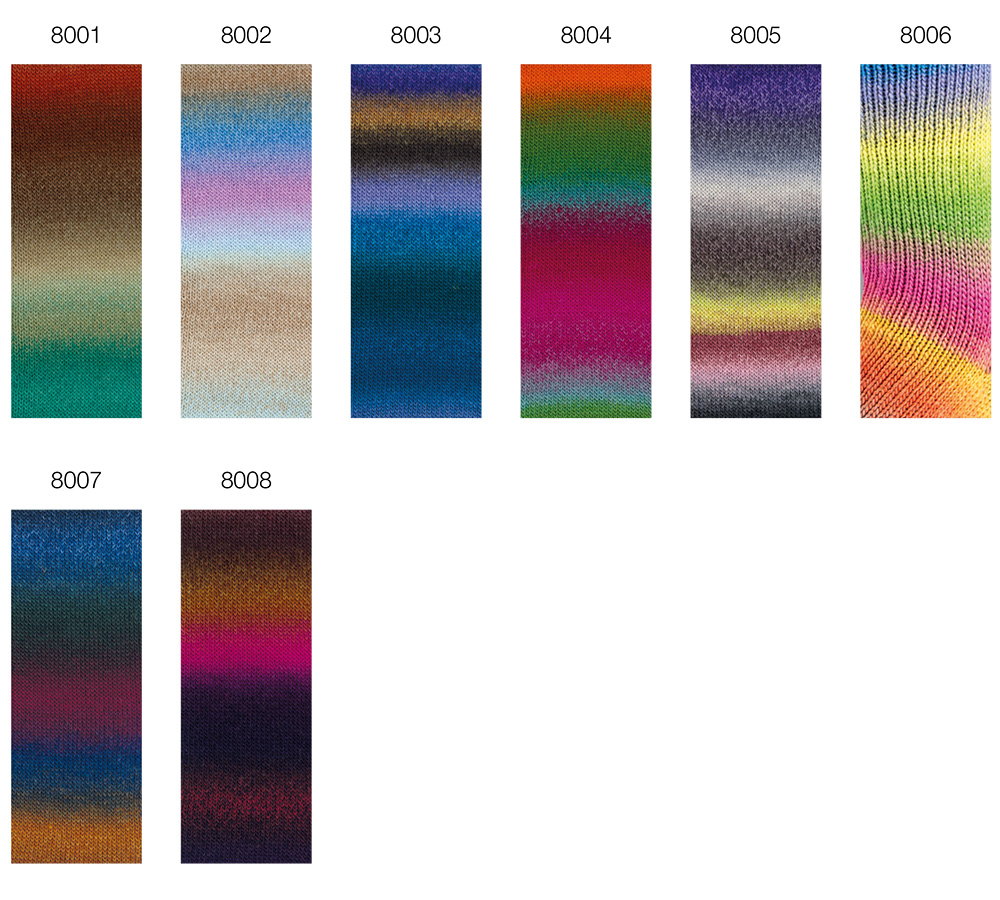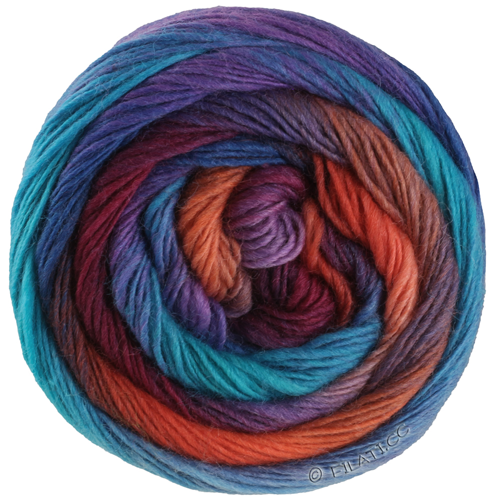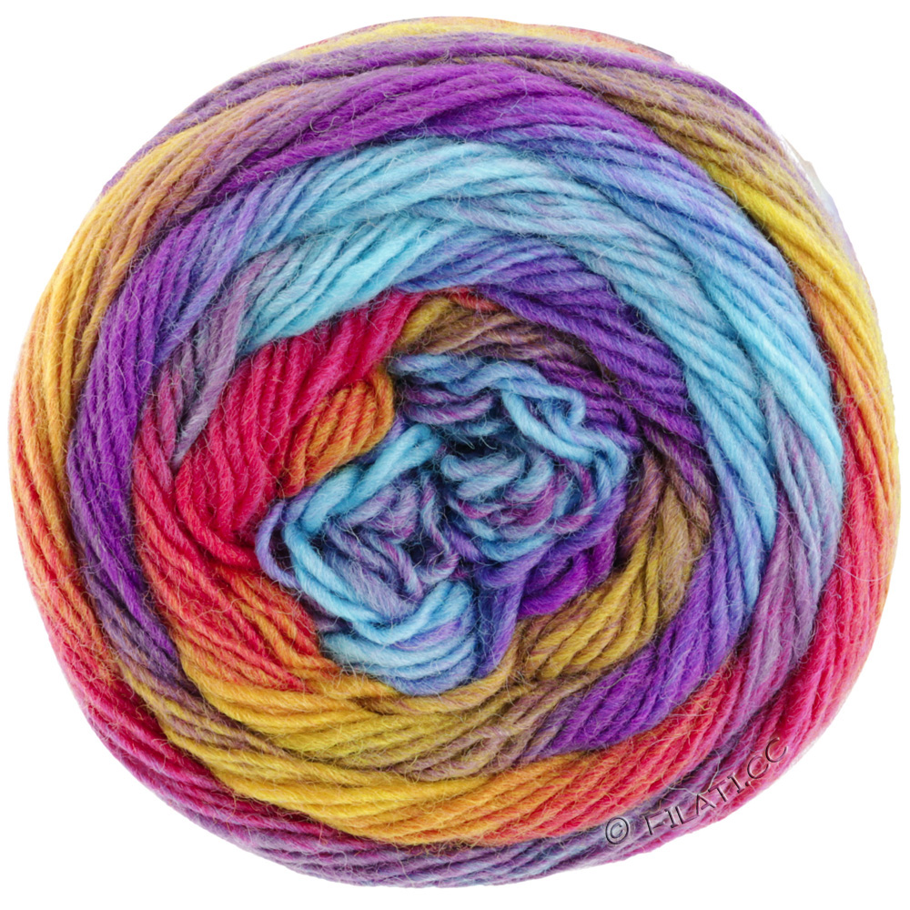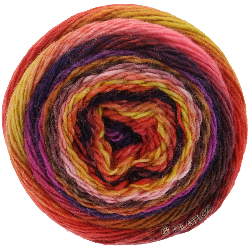 Lana Grossa Meilenweit 100 Color Mix Multi imponerar med intensiva multicolor-färgskiftningar och beprövad kvalitet. Det 4-trådiga sockgarnet av ull och polyamid är mjukt, formstabilt och lättskött. Perfekt för färgglada strumpor.