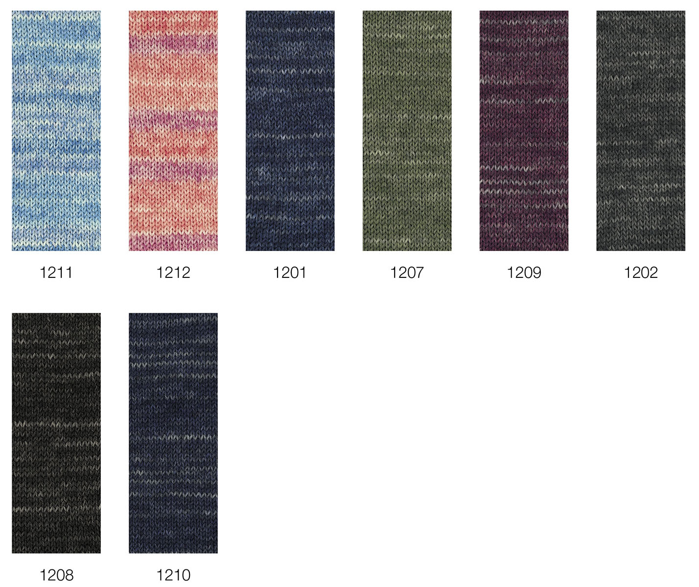 Klassiskt sockgarn i 80% ren ny ull. Självmönstrande.