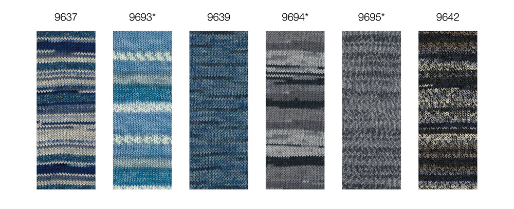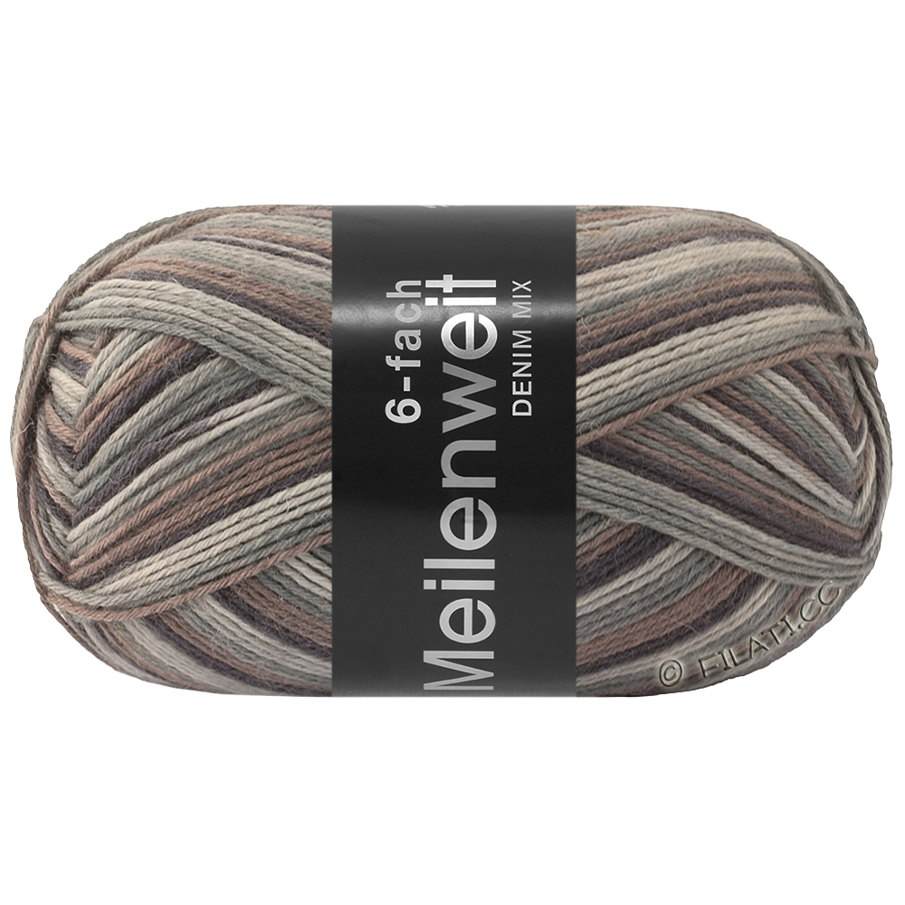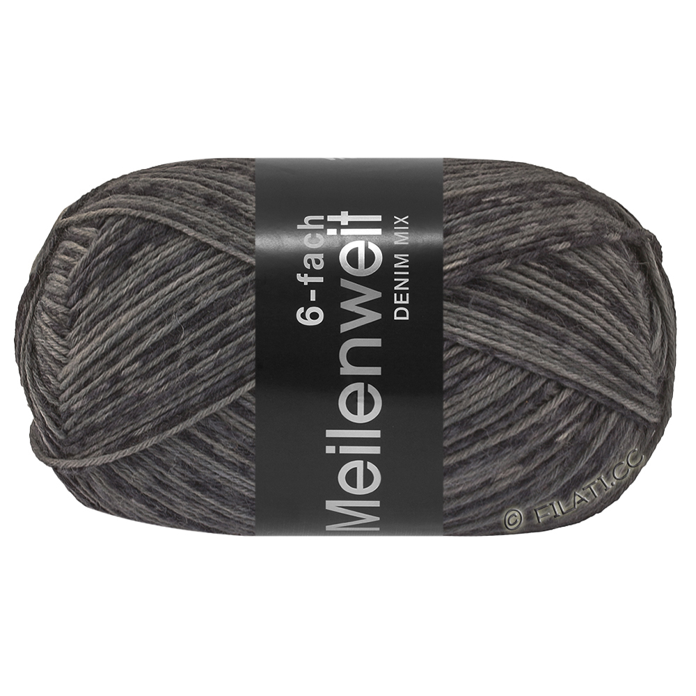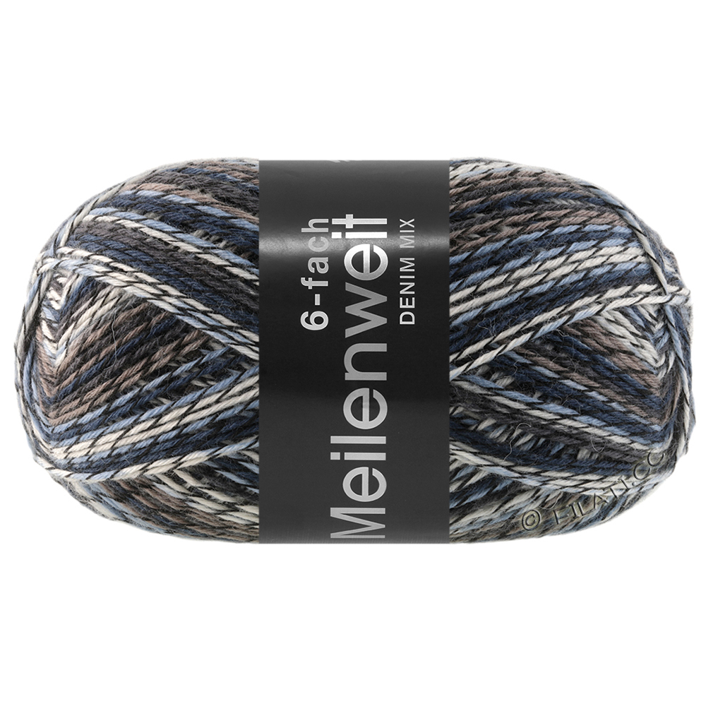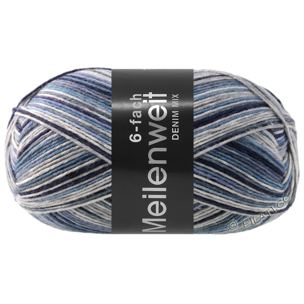Lana Grossa Meilenweit 6-trådig 150 g Denim Mix kombinerar trendiga denimfärger med mysig garnkvalitet. Det 6-trådiga strumpgarnet av ull och polyamid är extra varmt – perfekt för slitstarka strumpor.