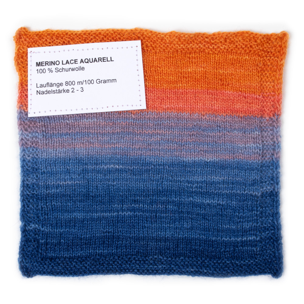 Merino Lace Aquarell förenar exklusiv kvalitet med ett konstnärligt färgspel: Tillverkat av 100 % merinoull imponerar detta lacegarn med sin särskilt mjuka och lätta struktur – perfekt för skira sjalar, fina halsdukar eller eleganta toppar. Höjdpunkten är den akvarelliknande färgskiftningen som ger varje stickat plagg en mjuk livfullhet. De harmoniskt flytande övergångarna framstår ibland diskreta, ibland livliga – alltid unika och speciella. Tack vare lace-tjockleken passar garnet utmärkt för detaljrika mönster och luftiga designer.