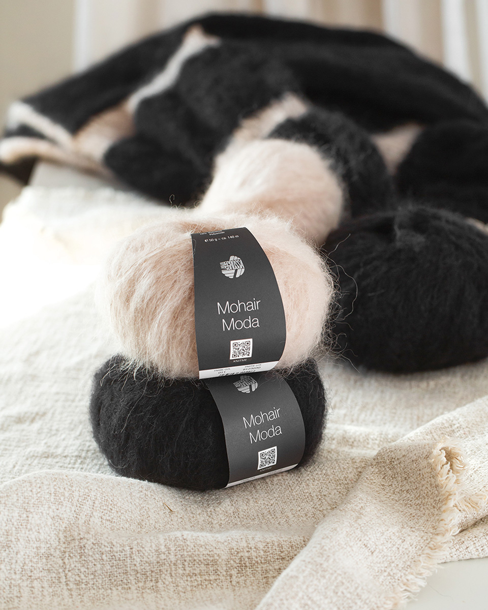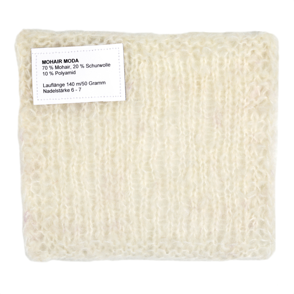 Mohair Moda är ett exklusivt trendgarn med voluminös fluffighet och modernt färgspel. Den högkvalitativa blandningen av mohair, merinoull och polyamid ger lätthet, värme och en lyxig look. Garnet kombinerar en mjuk känsla med en avslappnad struktureffekt och tillför djup och livfullhet till varje stickat plagg – perfekt för kreativa stilar med statement-karaktär.