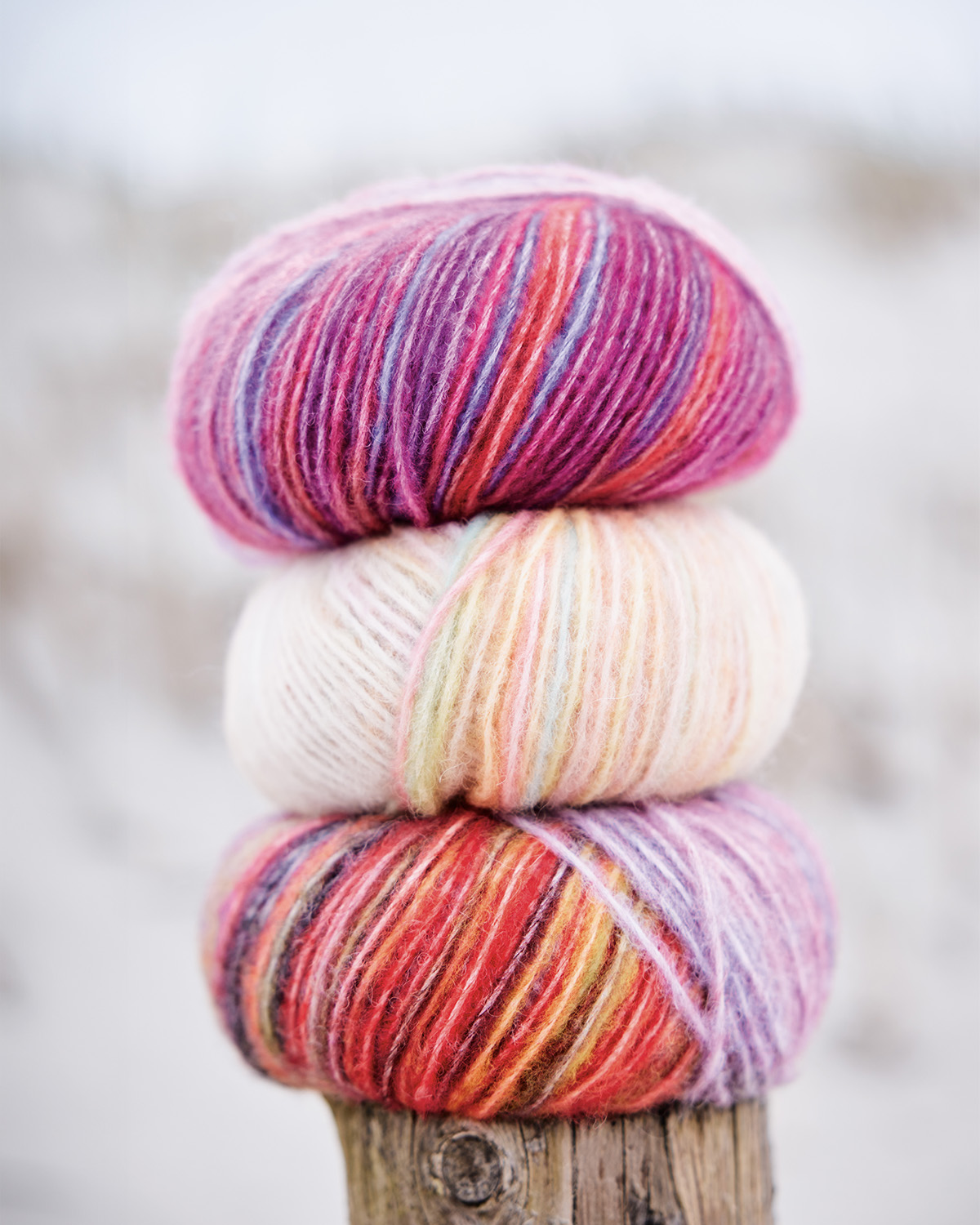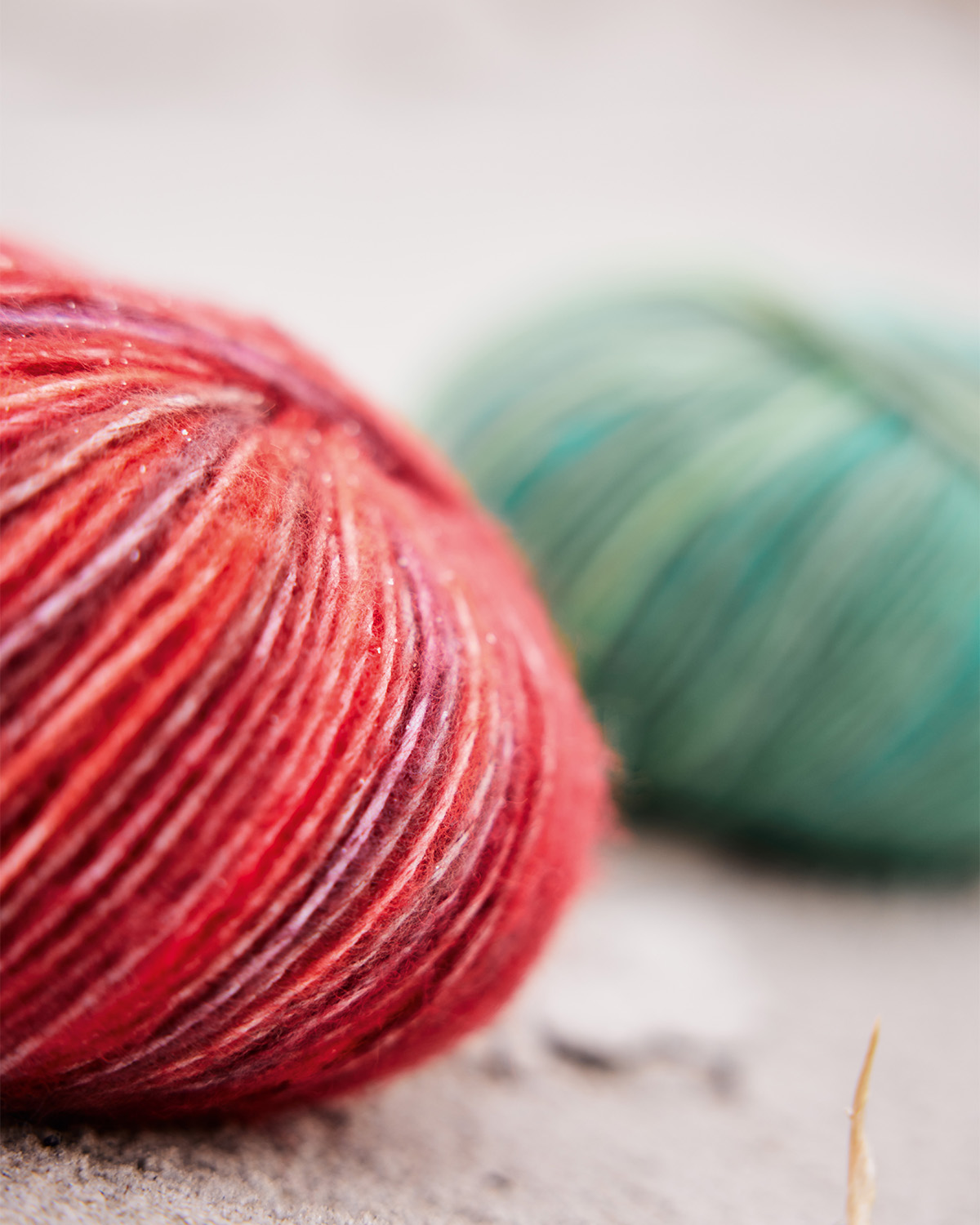 Soffilo-garn (blow yarn) med babyalpacka och merinofibrer och en intressant färgeffekt