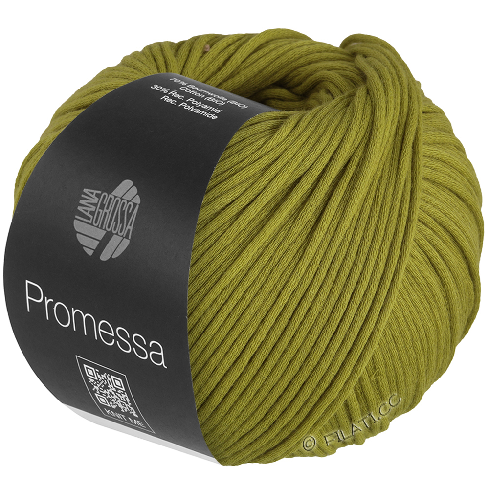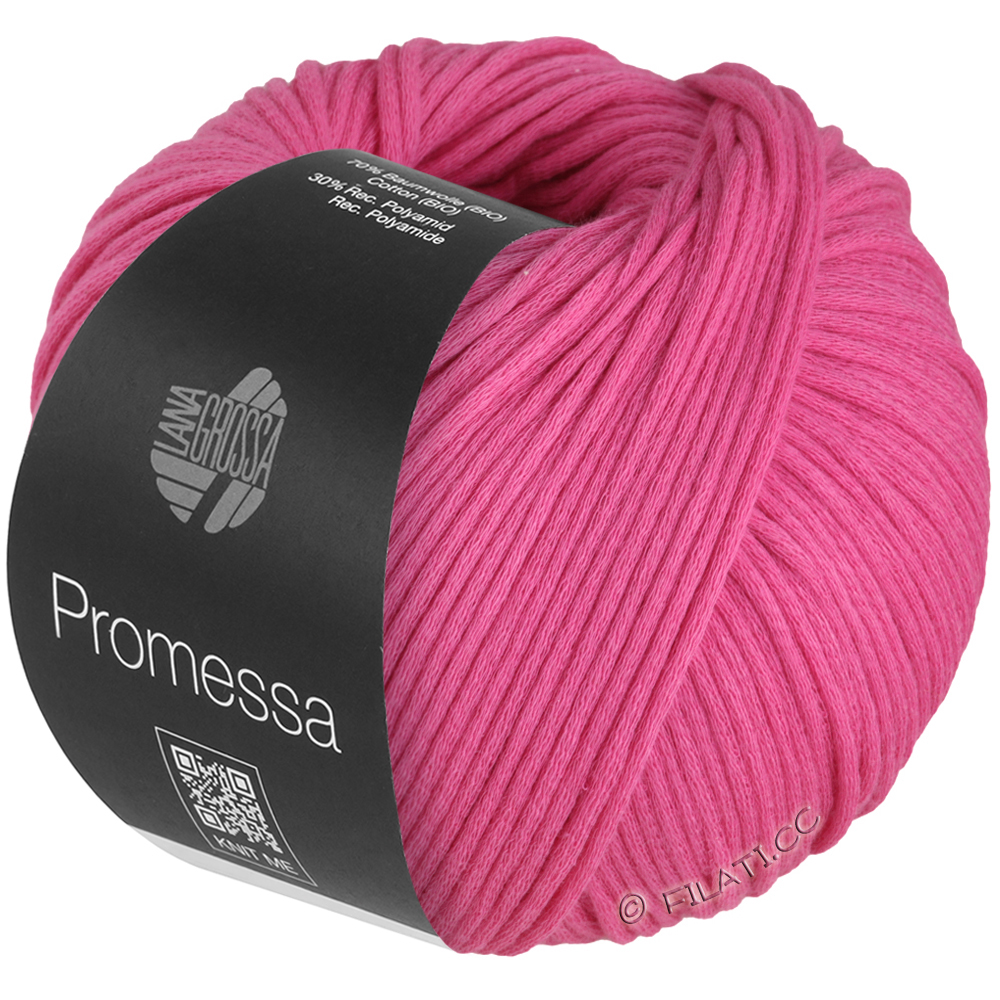 Promessa är ett mjukt, voluminöst slanggarn med naturlig utstrålning och modern look. Den innovativa blandningen av ekologisk bomull och återvunnet polyamid ger en behagligt lätt känsla, mjuk yta och ett klart maskmönster.