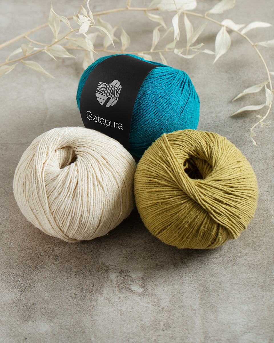 Setapura är ett högkvalitativt sommargarn av ren silke som imponerar med sin eleganta glans, mjuka fall och svalkande känsla. Den släta ytan ger ett särskilt jämnt maskmönster och gör garnet till det perfekta valet för eleganta tröjor, toppar, sjalar eller fina accessoarer. Idealiskt för alla som uppskattar naturlig elegans och lyxig bärkomfort.