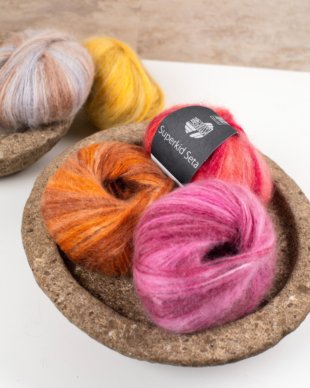 Superkid Seta är ett exklusivt garn av den finaste Superkid-mohairen och skimrande silke – lätt som ett moln, mjukt att ta på och med en lyxig look. Den fina ludden och den diskreta glansen ger varje stickprojekt en elegant, feminin touch. Även perfekt som medlöpargarn när du vill ge dina projekt mer djup och finess.