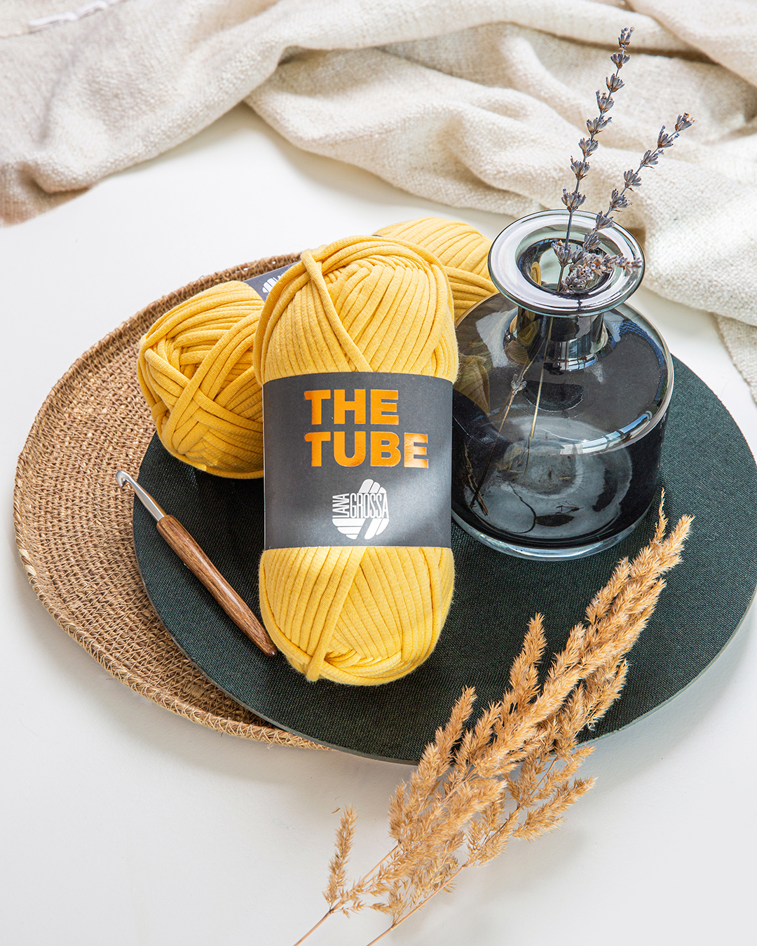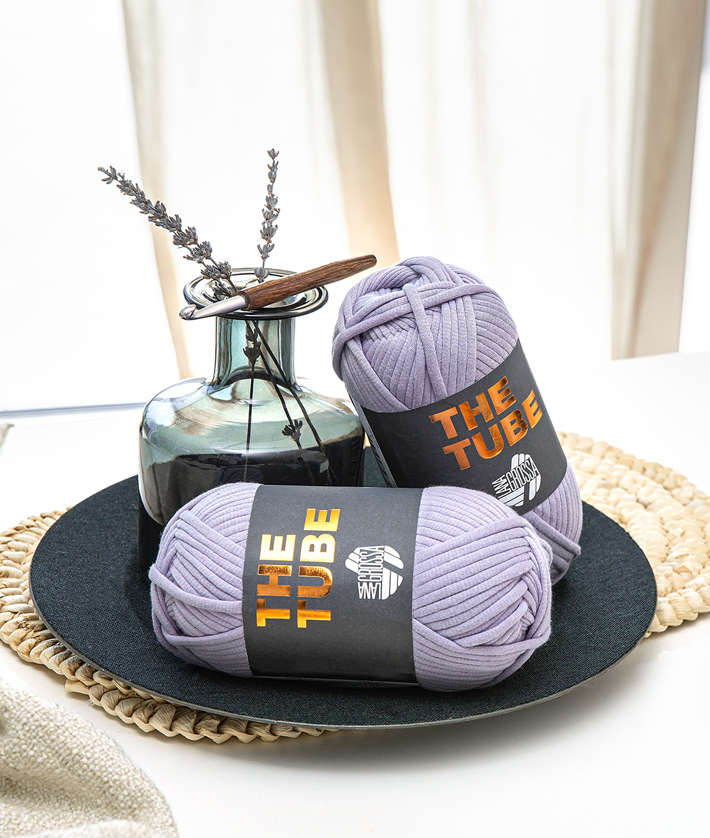 The Tube är ett voluminöst slanggarn med modern look och mjuk känsla. Det yttre höljet av bomull omsluter en lätt, luftig kärna, vilket gör garnet särskilt formstabilt, lätt och samtidigt behagligt mjukt. Perfekt för accessoarer, väskor, heminredning eller trendiga oversize-modeller som behöver struktur och stadga.