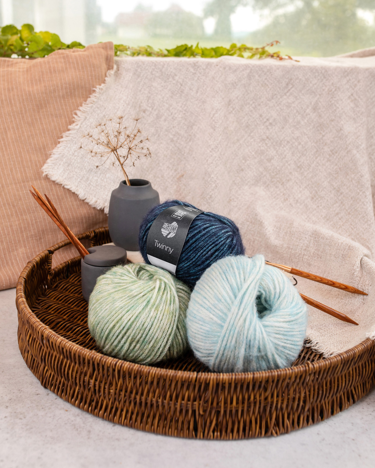 Voluminöst kedjespunnet garn i merinofibrer med en fleecy effekt