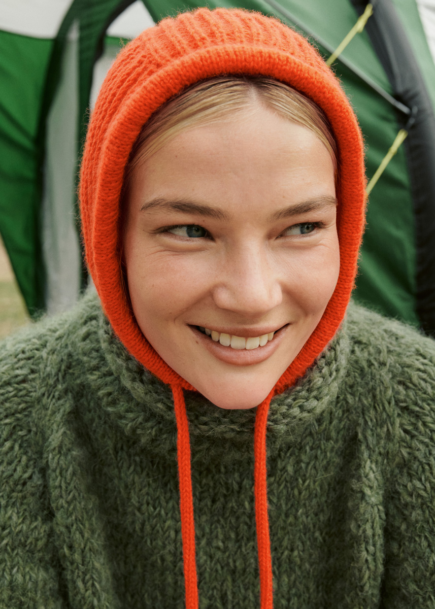 Lana Grossa Cashmere Verde (100% kashmir, löplängd 90 m/25 g), 100 g rödorange (färg 10); rundstickor nr. 3,5 och 4, 40 cm lång, strumpstickor nr. 4 och 1 sticklisa från PRYM.