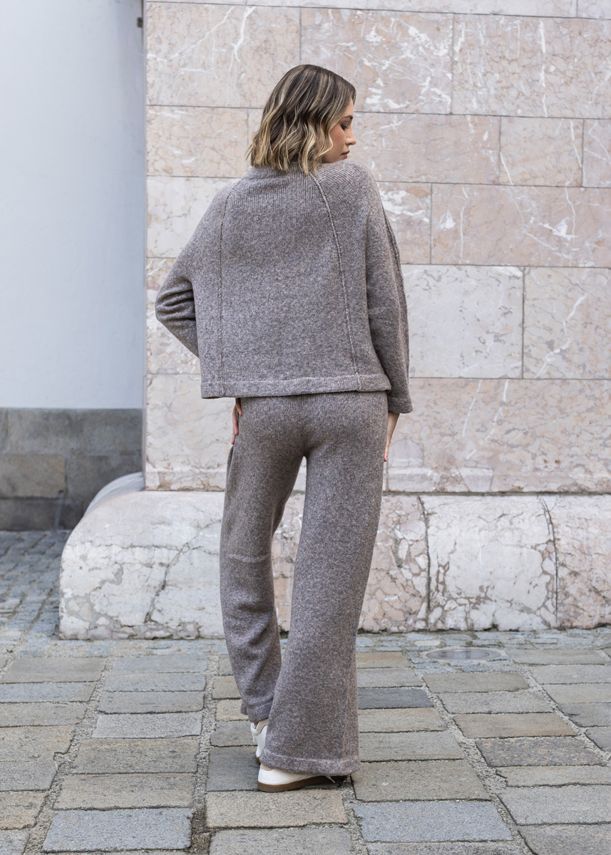 Modellen stickas i ett stycke uppifrån och ned. Den har på modellen en totallängd på ca. 106 cm, en lårvidd på 64 (70 - 78 - 86 - 98 - 110) cm, en midjevidd på 62 (66 - 70 - 75 - 80 - 88) cm, en höftvidd på 90,5 (98 - 108 - 116,5 - 118 - 140) cm och med en totallängd på 106 cm har den en invändig benlängd på 74,5 (73,5 - 72,5 - 71,5 - 70,5 - 69,5) cm.
