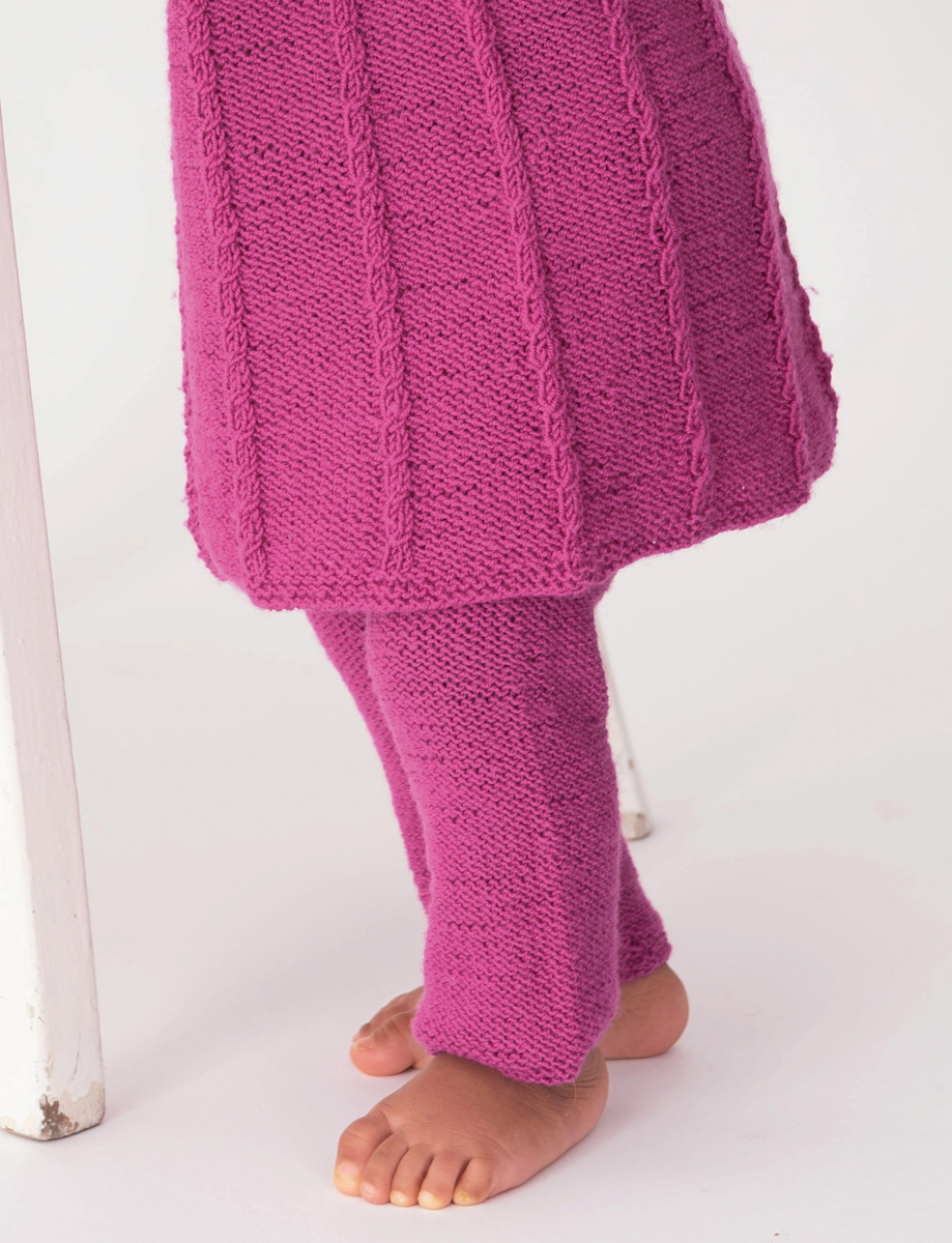 Lana Grossa-kvalitet ”Cool Wool Baby” (100 % ren ny uld, løbelængde = ca. 220 m/50 gr.): 50(100-100) gr cyklamen (fv 236), strikkepinde nr. 3, rundpind nr. 3, 40 cm