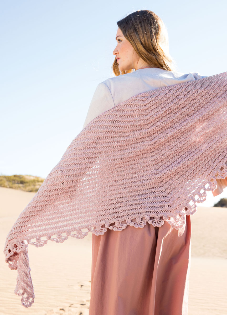 Lana Grossa-Qualität „Cashmere 16 Fine“ (80 % Schurwolle, 10 % Kaschmir, 10 % Polyamid, LL ca. 320 m/50 g); ca. 200 g Rosa (Fb 19); Stricknadeln Nr. 5, eine Wollhäkelnadel Nr. 4