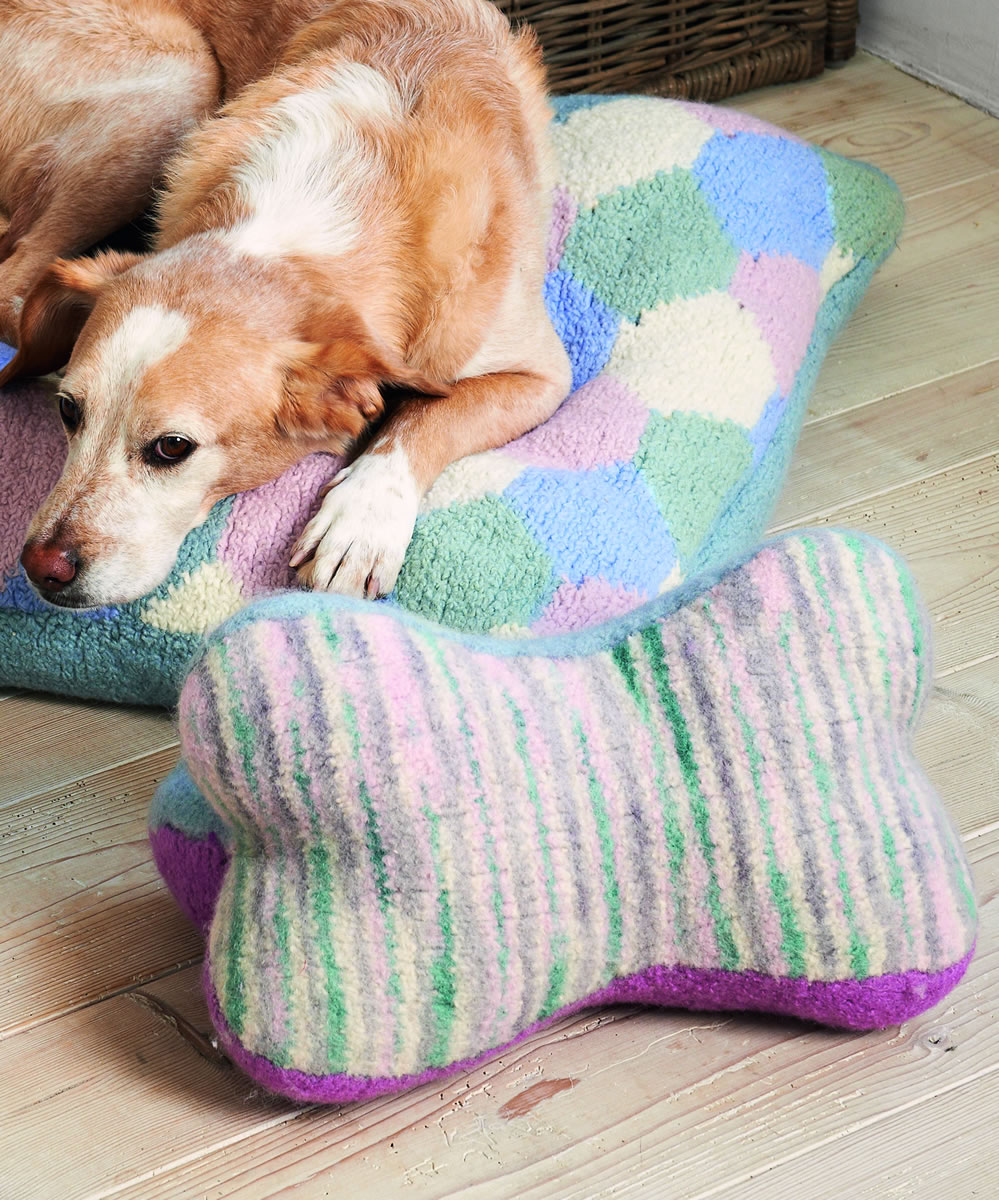 Ist doch immer wieder genial, was aus dem Werkstoff Wolle alles form- und machbar ist: Gemütliche und dekorative Kissen fürs Zuhause oder so ein lauschiges Plätzchen für unser liebes Familienmitglied.