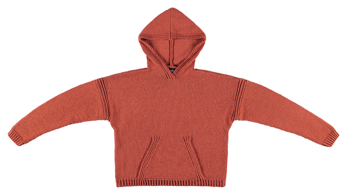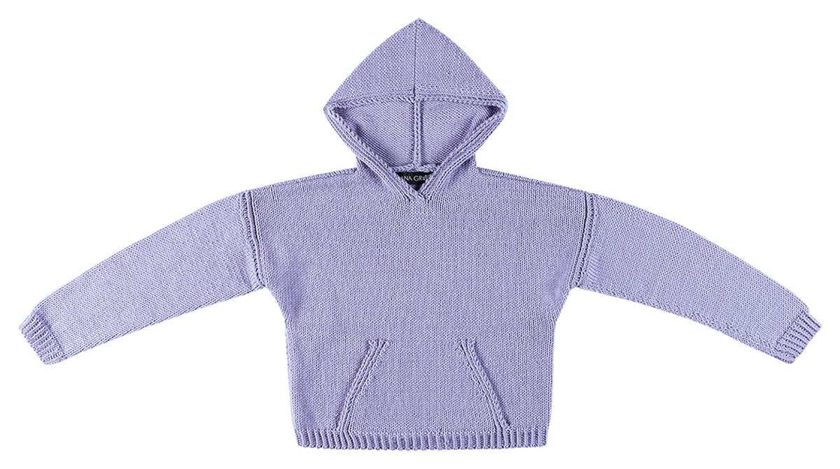 Lana Grossa Cool Wool (100% ren ny ull, löplängd 160 m/50 g), 250 (300 – 350 – 350) g ljus syren (färg 2070) eller rost (färg 2082); stickor nr. 3, 5 och 4.
