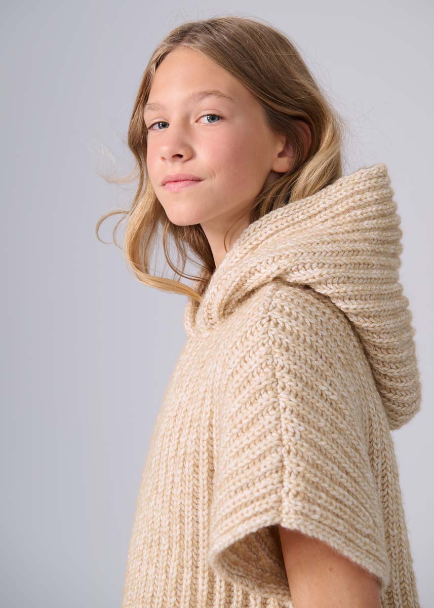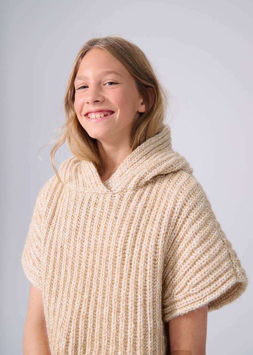 Lana Grossa-kvalitet „Twinny“ (97% ren ny ull (extrafin merino), 3% polyamid, löplängd = ca 100 m/50 g): ca 300 (350 - 350 - 400) g ljusbeige/sandbeige (färg 1); stickor nr. 4,5 och nr. 5; 1 kort rundsticka nr. 4,5.
