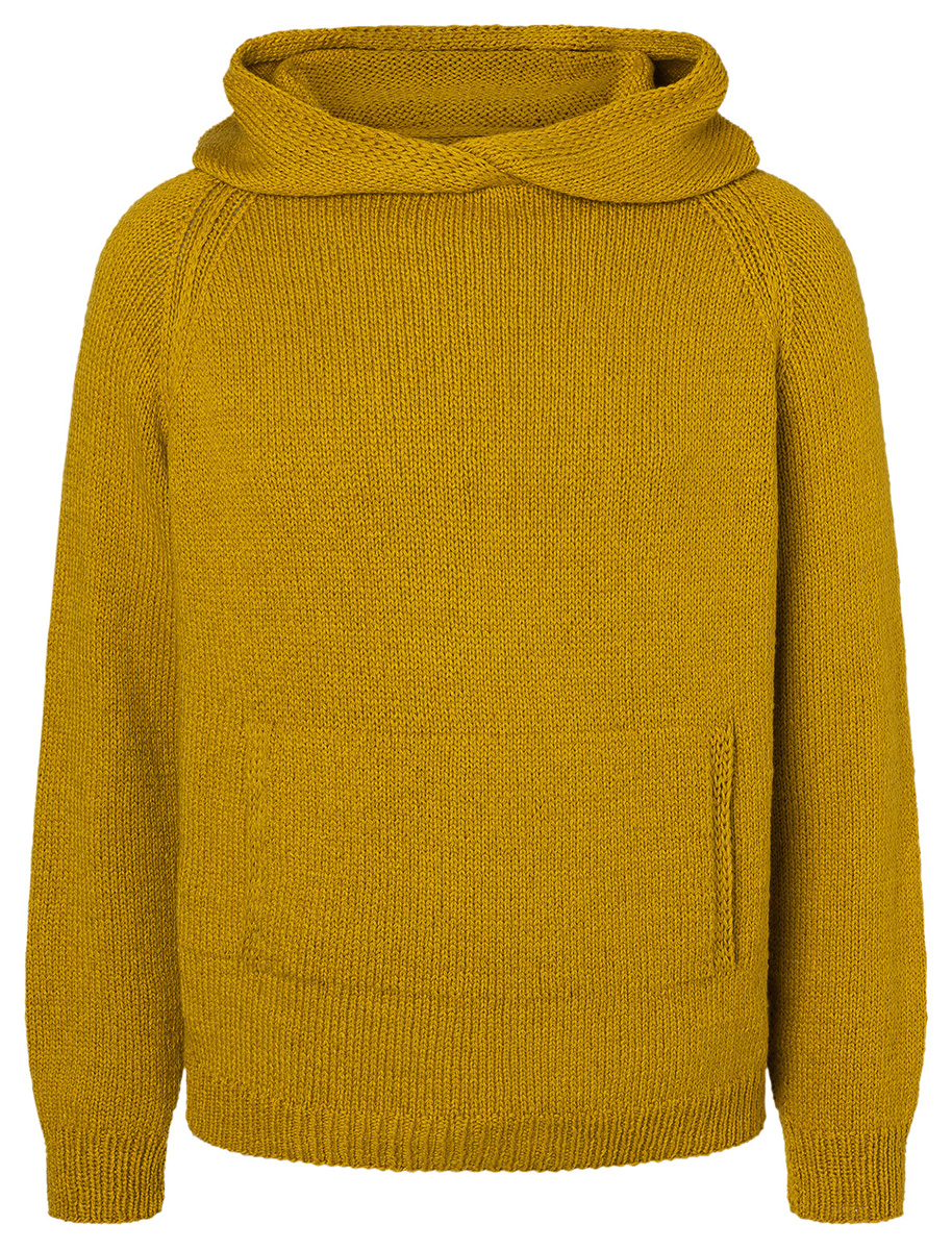 Lana Grossa Alta Moda Cotolana (45% ren ny ull (merino), 45% Pima bomull, 10% polyamid, löplängd 150 m/50 g), 600 (650 – 700) g curry (färg 24); stickor nr. 3 och 4.