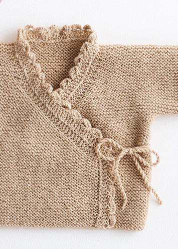 Lana Grossa-kvalitet ”Cool Wool Baby” (100 % ren ny uld (ekstrafin merino), løbelængde = ca. 220 m / 50 gr.): 100(100-150-150) gr beige (fv 212), strikkepinde nr. 3.