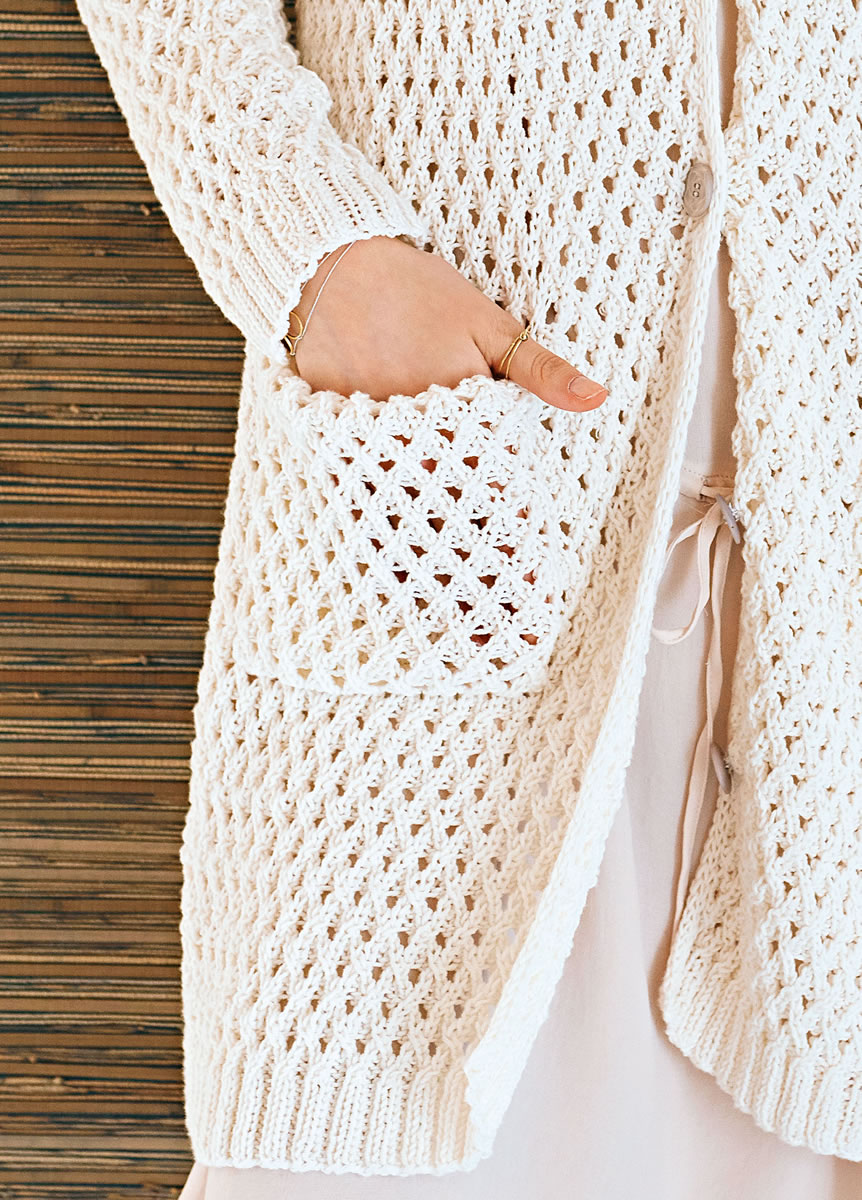 Ein Klassiker, in dem man immer eine gute Figur macht. Dafür sorgt die entspannte Langversion, für die Optik das „Mesh”-Muster und für die Form ein Baumwollgarn mit einem leichten Stretch-Anteil.