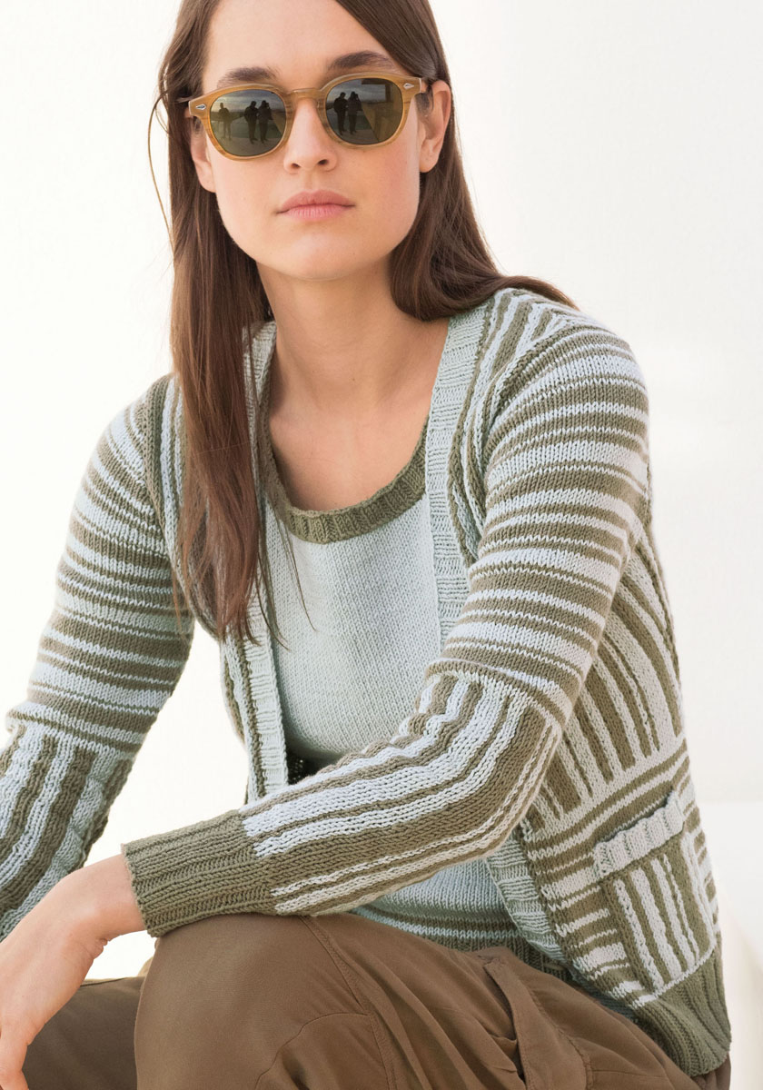 1-A-Look! Grafische Muster wirken besonders trendy, wenn Quer- auf Längsstreifen treffen. Top plus Cardigan = ein starkes Team!