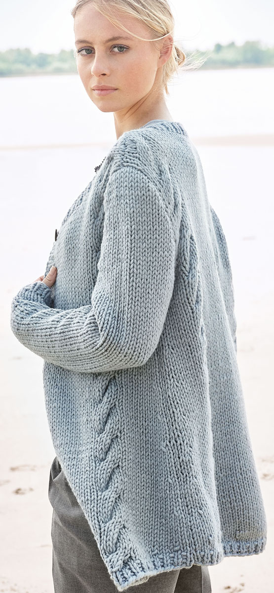 Unser Favorit und Lieblingsbegleiter durch die kalte Jahreszeit. Für die schöne Optik sorgen Zöpfe und ein abgerundeter Saum, der durch verkürzte Reihen entsteht