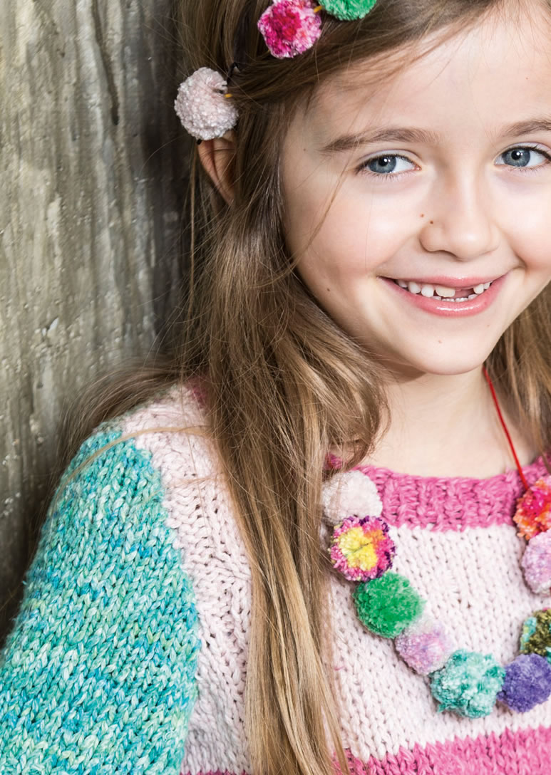 Moderne Hippie-Mädchen tragen heute keine Blumen im Haar. Nein, sie schmücken sich wie du mit fröhlich bunten Bommel-Ketten.