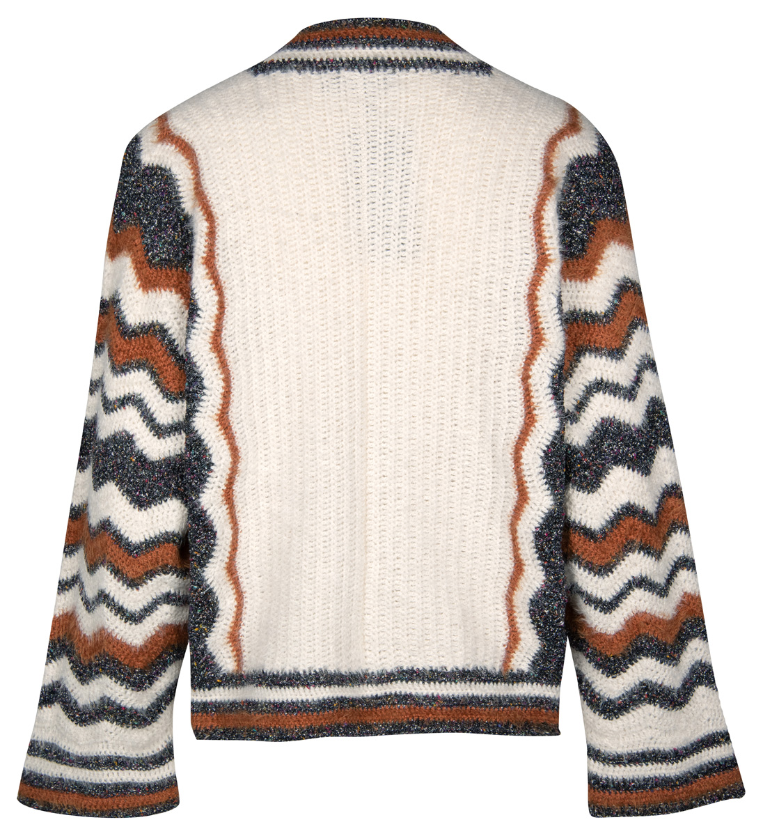 Lana Grossa-kvalitet „About Berlin Spotty” (55 % bomull, 26 % polyamid, 19 % polyester, löplängd = ca. 125 m/50 g): ca. 250 g färgglad anthracit (färg 8) och Lana Grossa-kvalitet „Per Fortuna” (74 % (bio) bomull, 26 % polyamid, löplängd = ca. 190 m/50 g): ca. 250 g ecru (färg 8) och ca. 100 g rost (färg 1); 1 ullvirknål nr. 4.