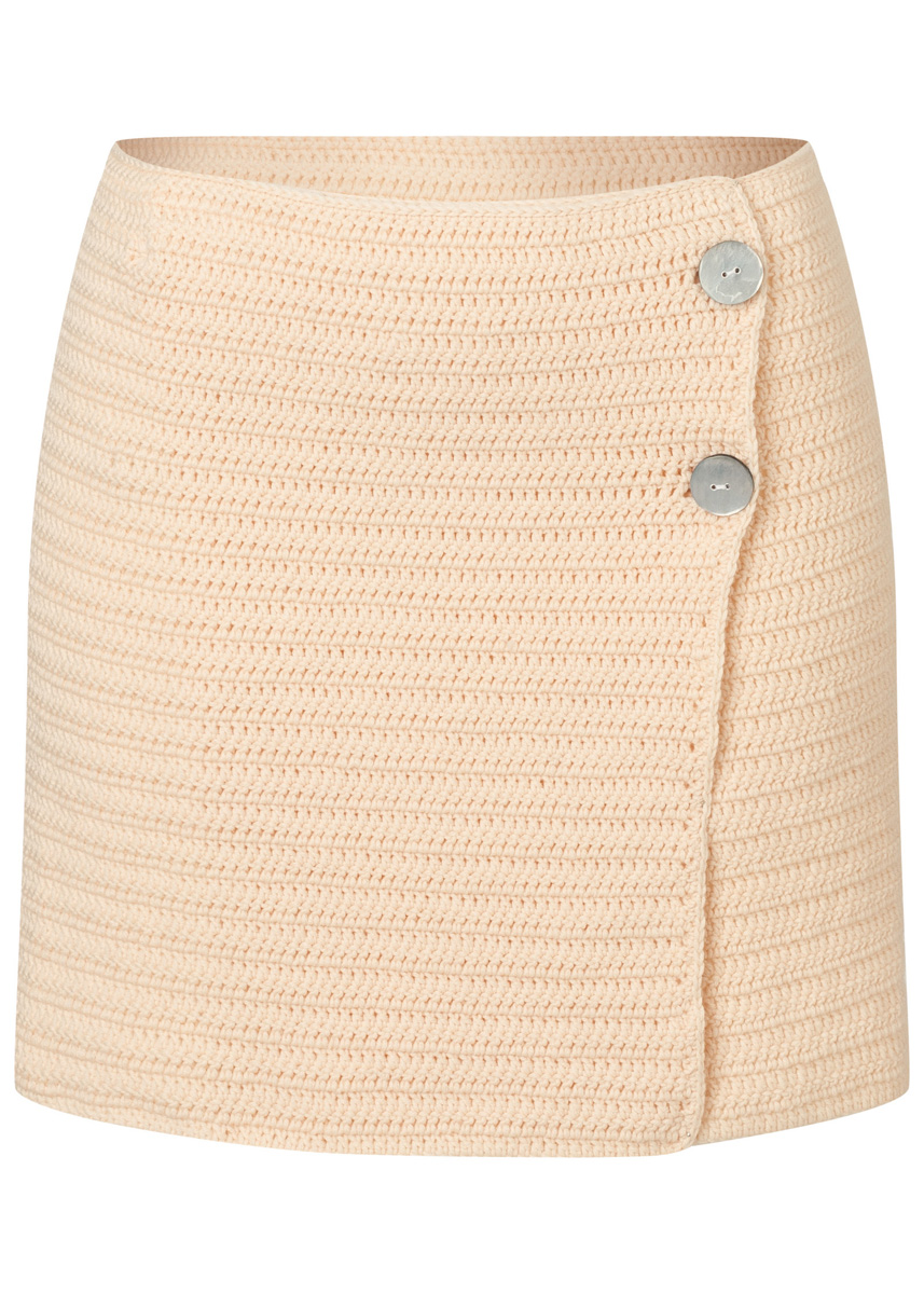 Lana Grossa Cool Wool Big (100% ren ny ull (extrafin merino), löplängd 120 m/50 g), 400 (450) g creme (färg 1008); 1 virknål nr. 3,5, från UNION KNOPF, 2 pärlemorknappar, Ø 25 mm och 2 platta knappar, Ø 22 mm.
