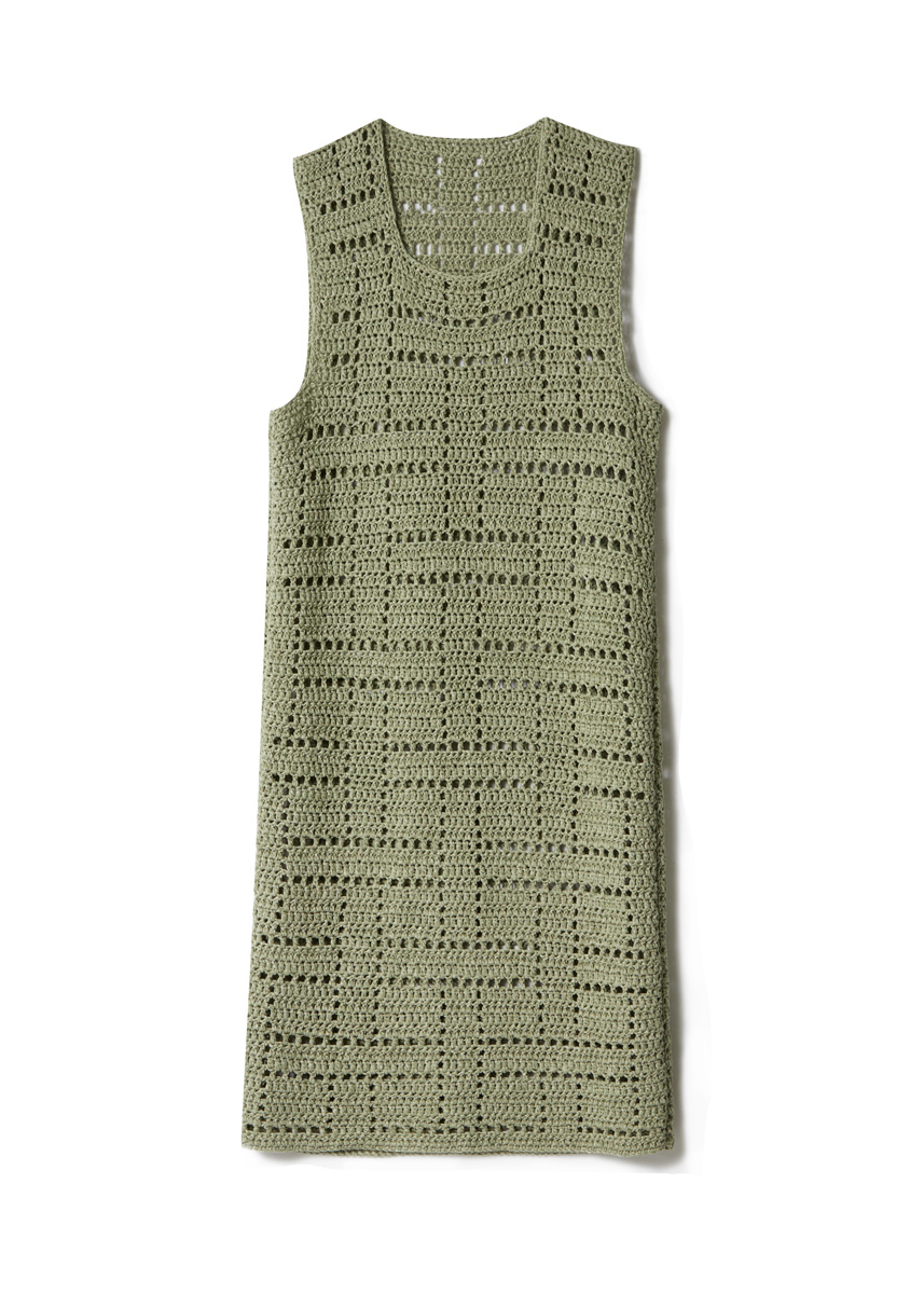 Lana Grossa „Cotton Mélange“ (80% (Mako) bomull, 20% ren ny ull (merino), löplängd 140 m/50 g), 350 (400 – 450) g khaki (färg 9); virknål nr. 4 och 5.