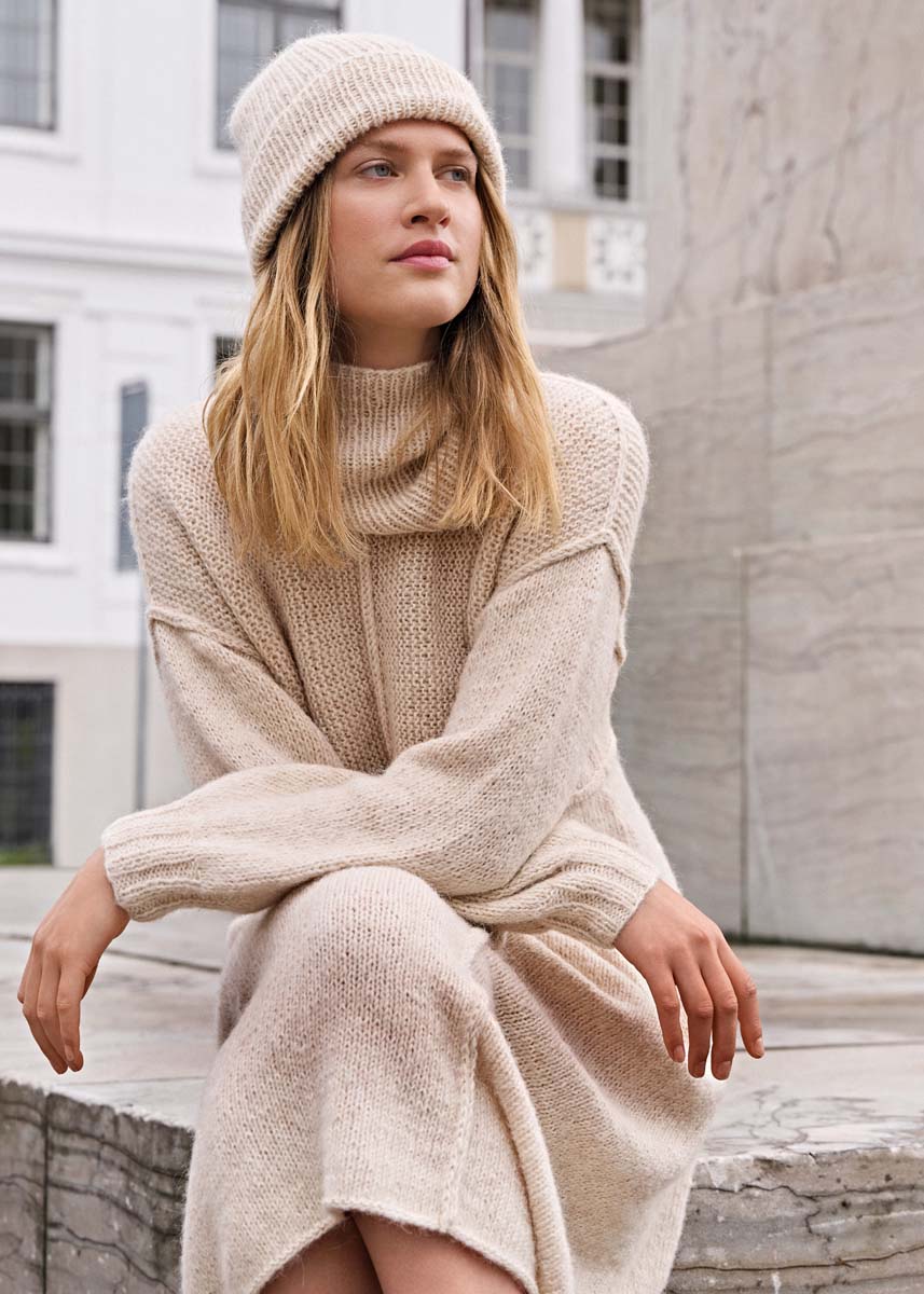 Garn: Lana Grossa Natural Alpaca Pelo (63 % bomull, 31 % alpakka (baby), 6 % ny ull (merino); LL = 125 m/50 g): 700 (800/900) g ljus beige (frg nr. 6)